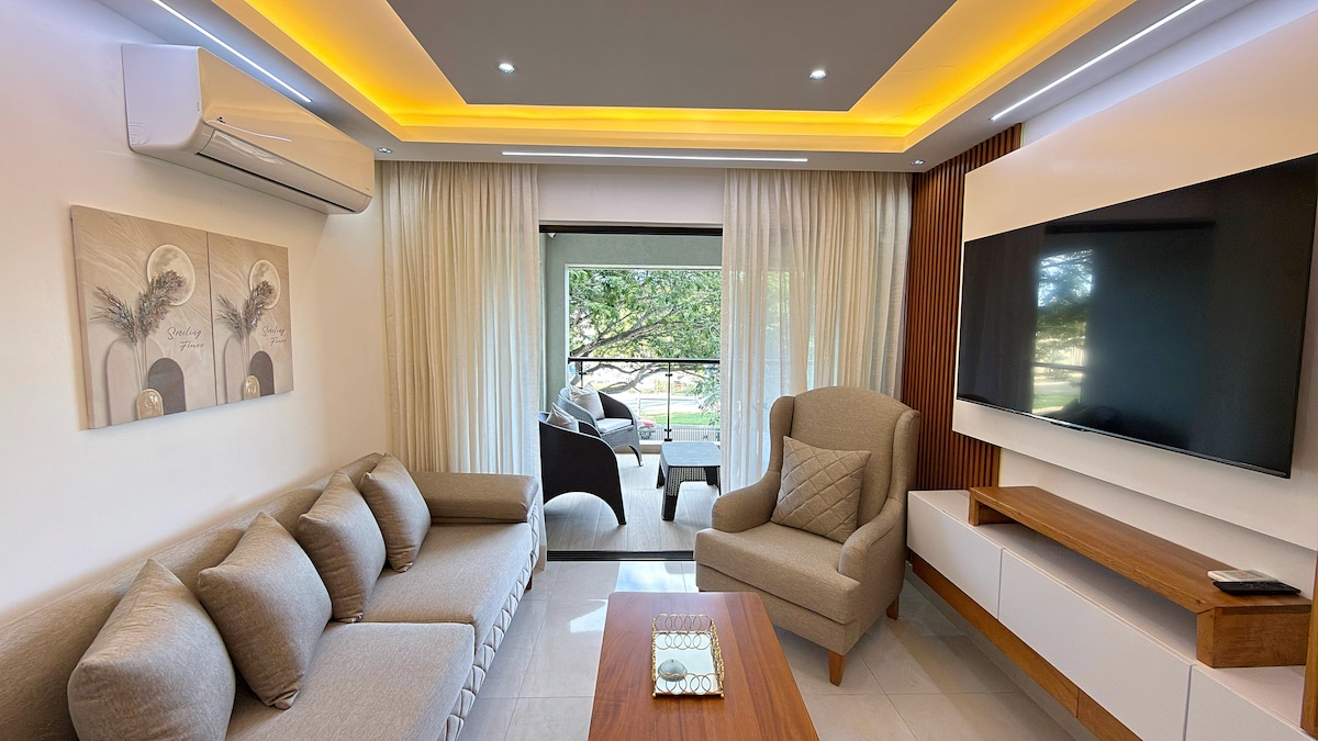 Apartmán s moderní a elegantní výzdobou, klimatizací ve všech pokojích a obývacím pokoji, vysokorychlostním Wi-Fi a dvěma soukromými balkony s přímým výhledem na bazén. V budově je posilovna, dětský koutek, zasedací místnost a dva plně vybavené společenské prostory: jeden ve 2. patře a druhý ve 12. patře s úžasným výhledem. Ideální pro pohodlný, bezpečný a stylový pobyt, ať už za prací nebo za zábavou.