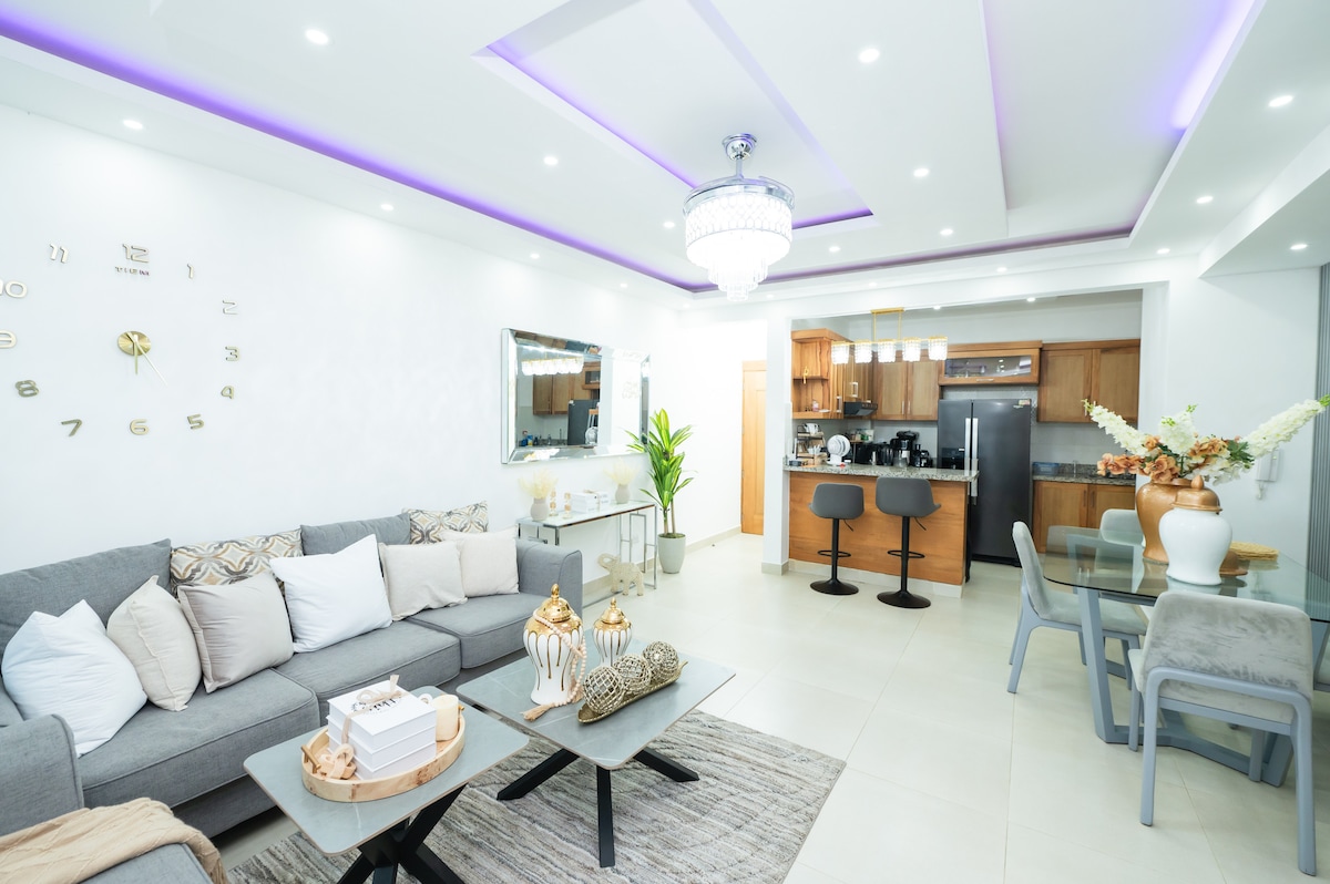 Vítej na svém dokonalém úniku v Santiagu! Tento moderní, plně zařízený apartmán se nachází pouhých 10 minut od letiště Cibao a 10 minut od centra města. Má 4 ložnice s klimatizací, 3 koupelny, pokoj pro hosty s vlastní koupelnou, dva obývací pokoje, chytré televize, Bluetooth reproduktory, kuchyň a parkoviště. Užij si vybavení, jako je bazén, hřiště, posilovna, jezero a další – to vše v bezpečném komplexu poblíž obchodů a nejlepších klinik. Ideální pro rodinu nebo přátele! Zažij klid, pohodlí a pohodlné ubytování na jednom úžasném místě.