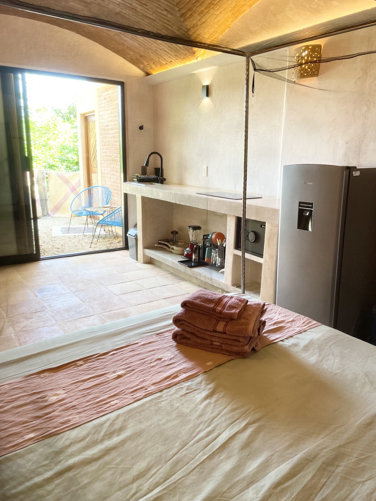 Welcome to our cozy studio apartment in the heart of Zipolite, just a 5-minute walk from the vibrant commercial street and the beach. This charming space is designed for two guests, featuring a queen bed, a comfortable sofa, a fully equipped kitchen, and a bathroom. Step outside to enjoy the fresh air from your private balcony or unwind in the outdoor tub. This studio situated next to the main street serves as a perfect getaway to immerse yourself in Zipolite’s laid-back beach lifestyle.