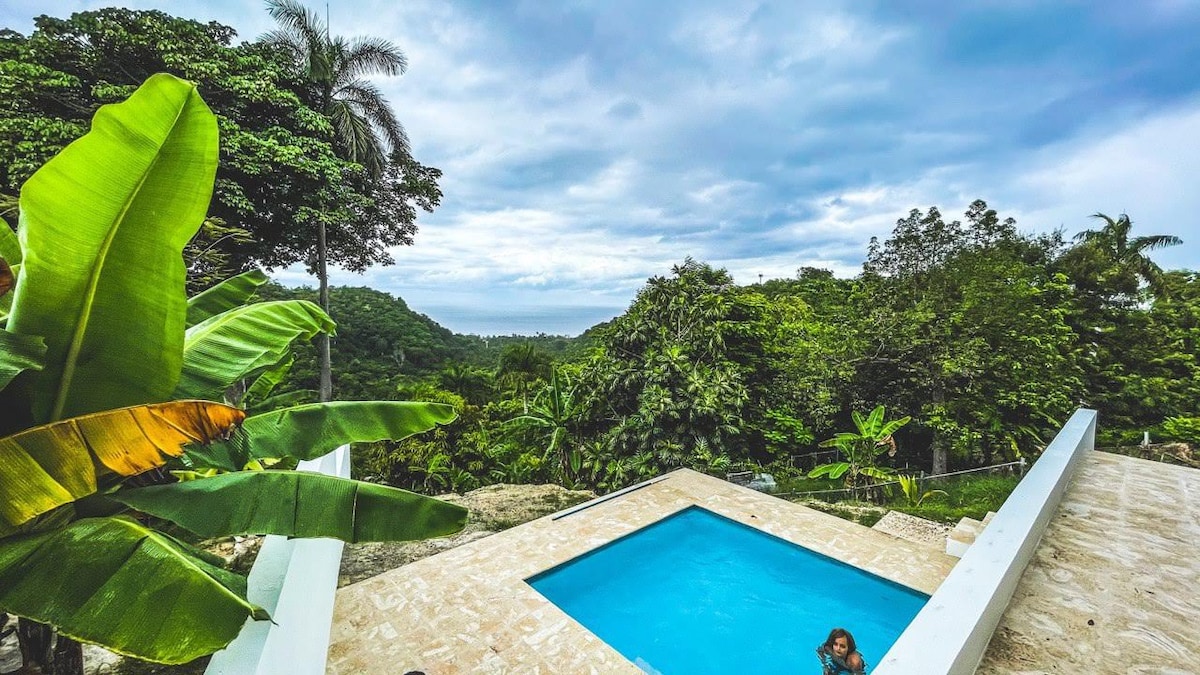 Vila s bazénem na vrcholu kopce s výhledem na písečnou pláž