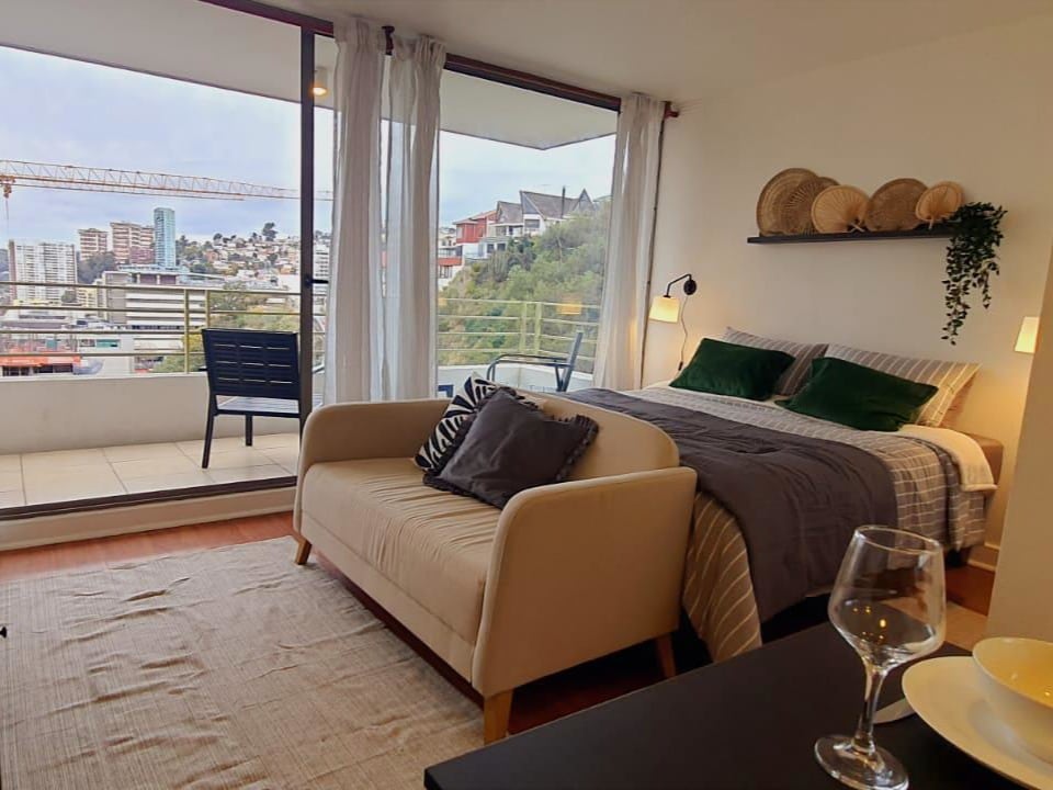Departamento Viña del Mar vynikající lokalita, povolena až pro 3 osoby (nebo alternativně 2 dospělí a 2 děti). Má pouze 1 ložnici se 2místnou postelí, topením a vlastní koupelnou. V obývacím pokoji je 2místná rozkládací pohovka. Plně vybavený kuchyňský kout. Terasa s částečným výhledem na oceán. It has TV Cable, Wifi and private covered parking, for the exclusive use of the apartment, 24 hours a day.