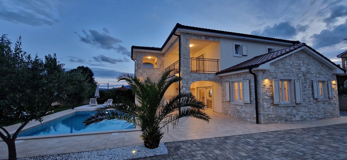 Tato vila je obklopená zelení a nabízí úchvatný výhled na Jaderské moře. Bazén o rozloze 50 m² je plný slané vody. V přízemí je plně vybavená kuchyň, obývací pokoj a dvě ložnice s koupelnou. Obývací pokoj vede na krásnou terasu. K dispozici je také letní kuchyně a gril. Ložnice s koupelnou, saunou a šatnou je v prvním patře. Má také galerii s posilovacími stroji a stolním fotbalem. Vila nabízí dvě garážová stání.