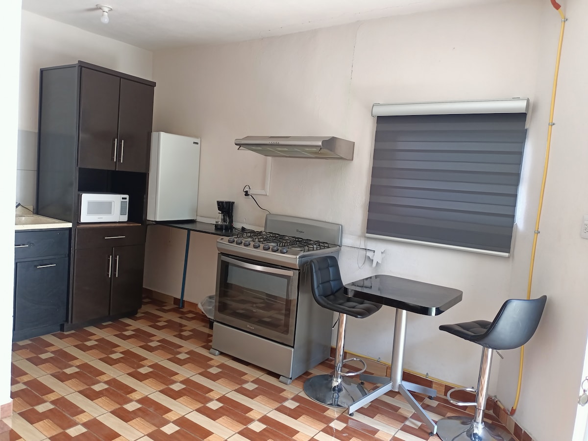Prostorný byt v patře s vybavenou kuchyní, uzavřenou garáží, 2 ložnicemi s koupelnami a terasou. V Colonia Las Praderas, poblíž Plaza Patio a Ley Valdez Sanchez. Bezpečná a snadno přístupná oblast. Vchod sdílí garáž s hlavním domem, ale příjezd je nezávislý, klíče si můžete kdykoliv vyzvednout v uzamykatelné schránce. Služby zahrnují: internet, teplou vodu, pračku, stropní ventilátor, kuchyňské náčiní, duální minisplit (horký/studený), garáž.