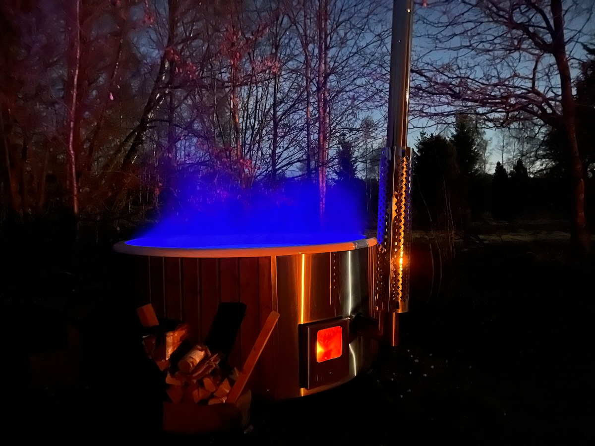 Vítej ve srubu na vrcholu kopce vedle přírodní rezervace Fulltofta. Máš přístup na celý pozemek, který má velkou dřevěnou terasu s integrovanou vířivkou a výhledem do údolí. Chata má podkroví s ložnicí, moderní koupelnu a útulný obývací pokoj s krbem pro večery u ohně. Nabíjecí stanice pro elektromobily na parkovacím místě✅ Doporučeno pro páry/rodiny. Večírky nejsou povoleny a je důležité, aby se večer po 21:00 venku nepořádaly hlasité oslavy.