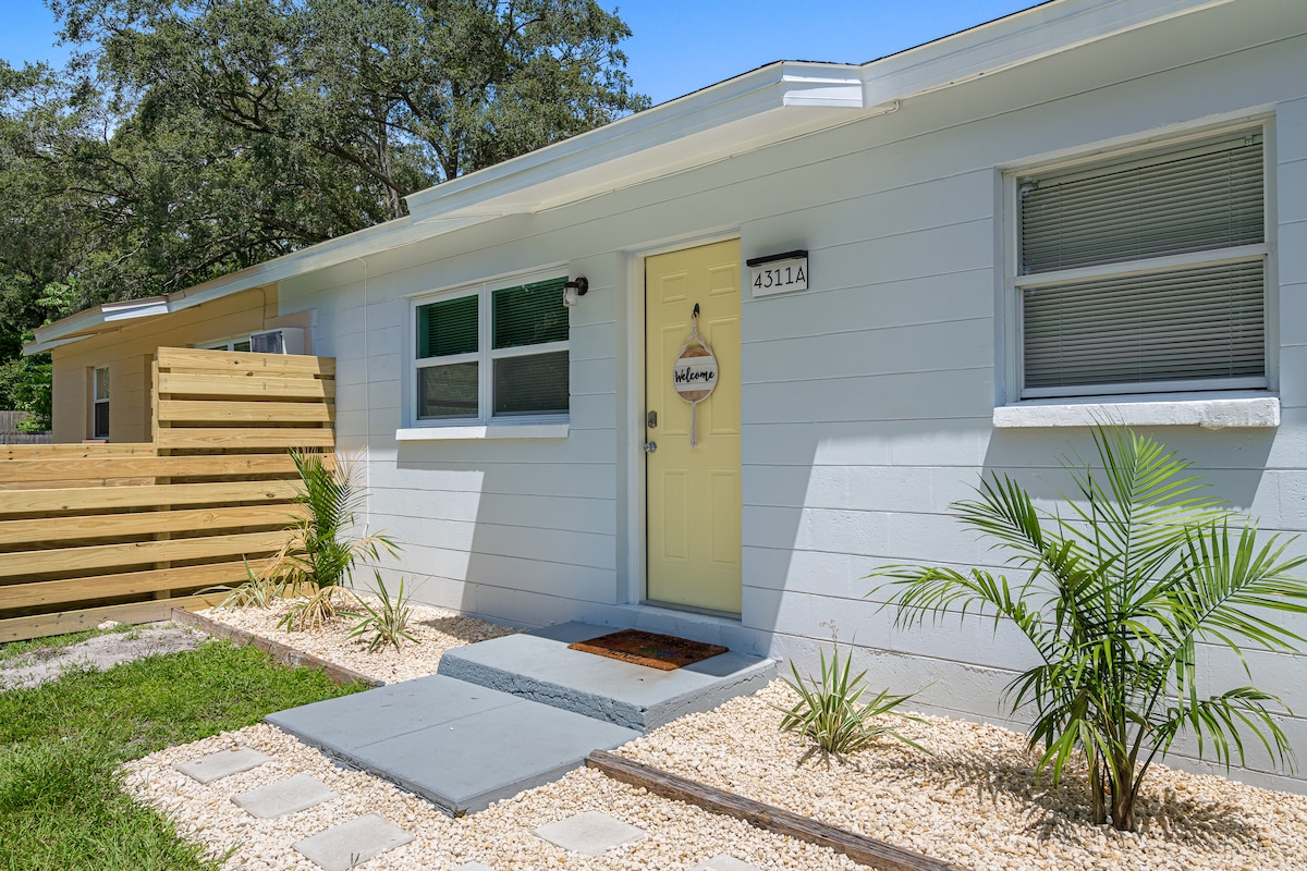 Dej si nohy na stůl a odpočiň si v tomto klidném, centrálním a stylovém ubytování. Lokalita, lokalita centrálně umístěná do 8 minut od mezinárodního letiště Tampa, 5 minut od proslulého Riverwalku v Tampě a Downtown Tampa & Armature Works, 5 minut od stadionu Raymond James. Naším cílem je poskytnout našim hostům čisté, bezpečné a pohodlné ubytování, které mohou při návštěvě našeho vzrušujícího města nazývat domovem. Náš nově zrekonstruovaný apartmán zahrnuje manželskou postel, kuchyň, koupelnu, wifi, soukromý vchod a parkování mimo ulici.