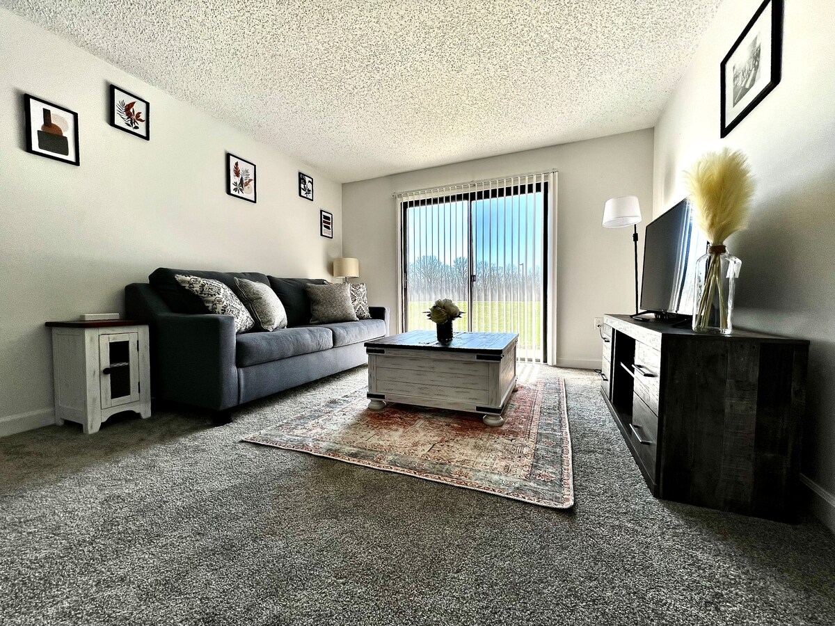 Nově zrekonstruovaný byt v centru Hamiltonu. Toto místo se nachází v srdci Hamiltonu. Užijte si klidný pobyt v našem útulném apartmánu se 2 ložnicemi a 2 koupelnami, vyhrazeným pracovním prostorem a parkováním ZDARMA. 2 míle od Spooky Nook. Snadný přístup na Miami University, Fairfield a Interstae 275 a vše kolem smyčky... Kings Island, Bengals, Reds, Cincinnati Zoo, Creation Museum a další. Když se ubytuješ na tomto místě v srdci dění, s rodinou to budete mít kousek na všechna zajímavá místa. Do jednotky vede 38 schodů.