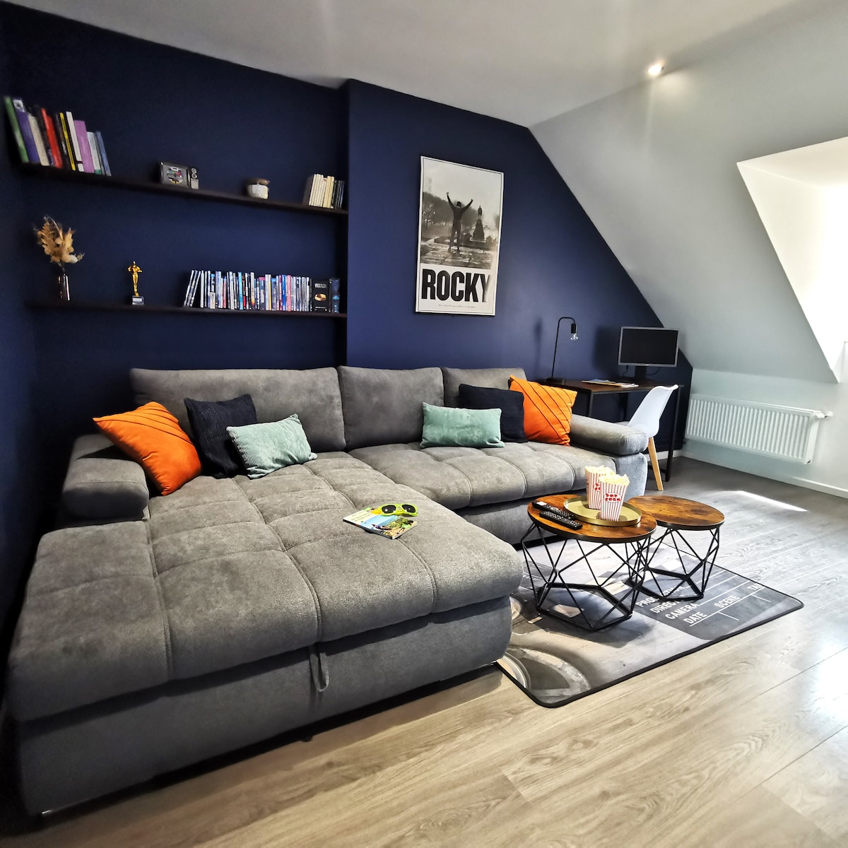 Chcete si odpočinout u dobrého filmu nebo vašeho oblíbeného seriálu? Pak je naše kino pro vás to pravé! Vychutnejte si náš 190cm 4K LED televizor a nechte se rozmazlovat jeho filmovým balíčkem. Můžete si odpočinout v naší prostorné ložnici s manželskou postelí a hýčkat se jako skutečná hvězda! A pokud jste na služební cestě, najdete zde vyhrazený pracovní prostor, kde si budete moci odpočinout. Popcorn už na vás čeká! Jennifer a Sébastien