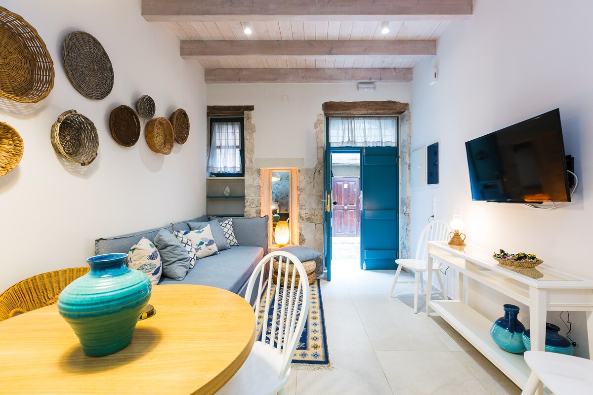 Celý dům, jednoduchý a elegantní, v klidné a malebné ulici starého města vedle rušných obchodů, taveren, kostelů, trhů, muzeí, zahrady, kavárny a restaurací typických pro radostný krétský život. Jen pár minut pěšky od přímořské promenády a pláží. Dům je kompletně zrekonstruován s moderním designem, který zachovává a zvyšuje tradiční charakter místa, kombinace krétské, benátské a byzantské architektury.