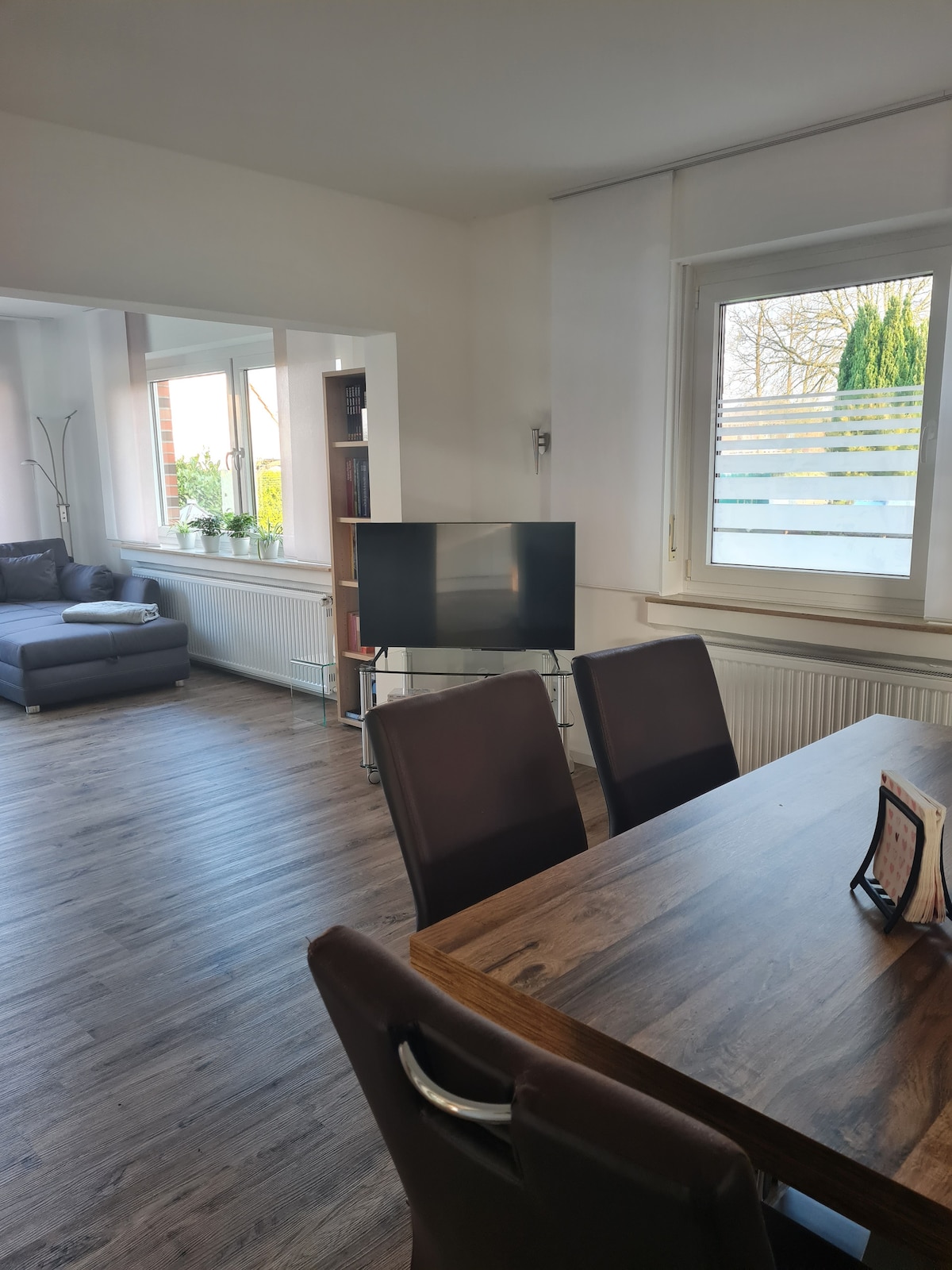 S láskou zařízený 2Z-apartmán nabízí prostorné obývací studio, které se otevírá do zahrady přes slunečnou terasu. Skleněné povrchy s hloubkou podlahy poskytují příjemnou přirozenou expozici. Pokud vyjdete ze dveří zahrady, můžete se rozhodnout. Kolem vpravo, po Aaseeufer, ven do přírody, kde se Aa stává více a více originální a vede ven do Aatal na úpatí lesa Teutoburg. Nebo doleva, při skoku do centra.
