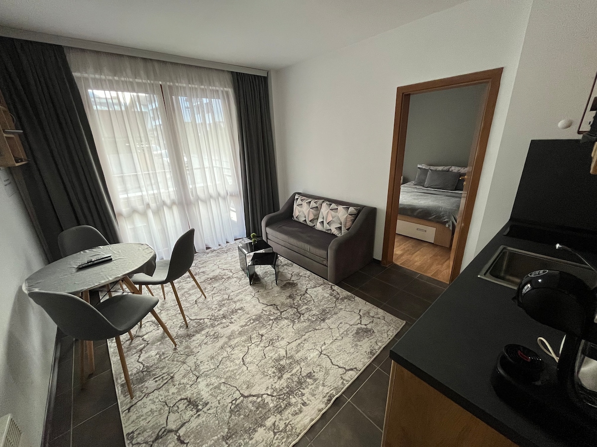 Toto je moderní, nové studio v Borovets gardens hotelu. Je to velmi blízko ke sjezdovkám, pouhých 10 minut chůze. Je velmi dobře vybaven a má vše, co potřebujete pro perfektní dovolenou. V případě potřeby můžeme zajistit letištní transfer a lyžařské vybavení. Buď našimi hosty!