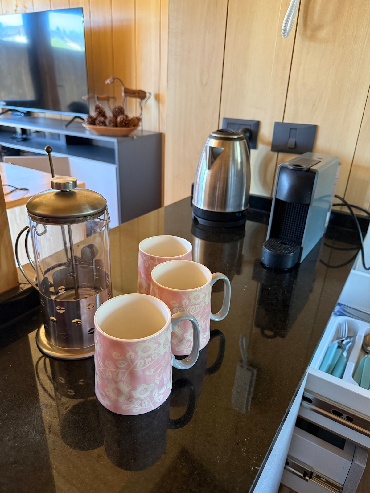 Podkroví s moderní architekturou, integrovanými prostory, velkými okny a velkými okny, která ti umožní vychutnat si působivou přírodu zevnitř. Obývací pokoj, integrovaná kuchyně a jídelna, plně vybavená kuchyně pro 5 osob V obývacím pokoji je futon, který se změní v dvoumístnou postel a jednolůžko. Mezanine má dvoumístný sommier.