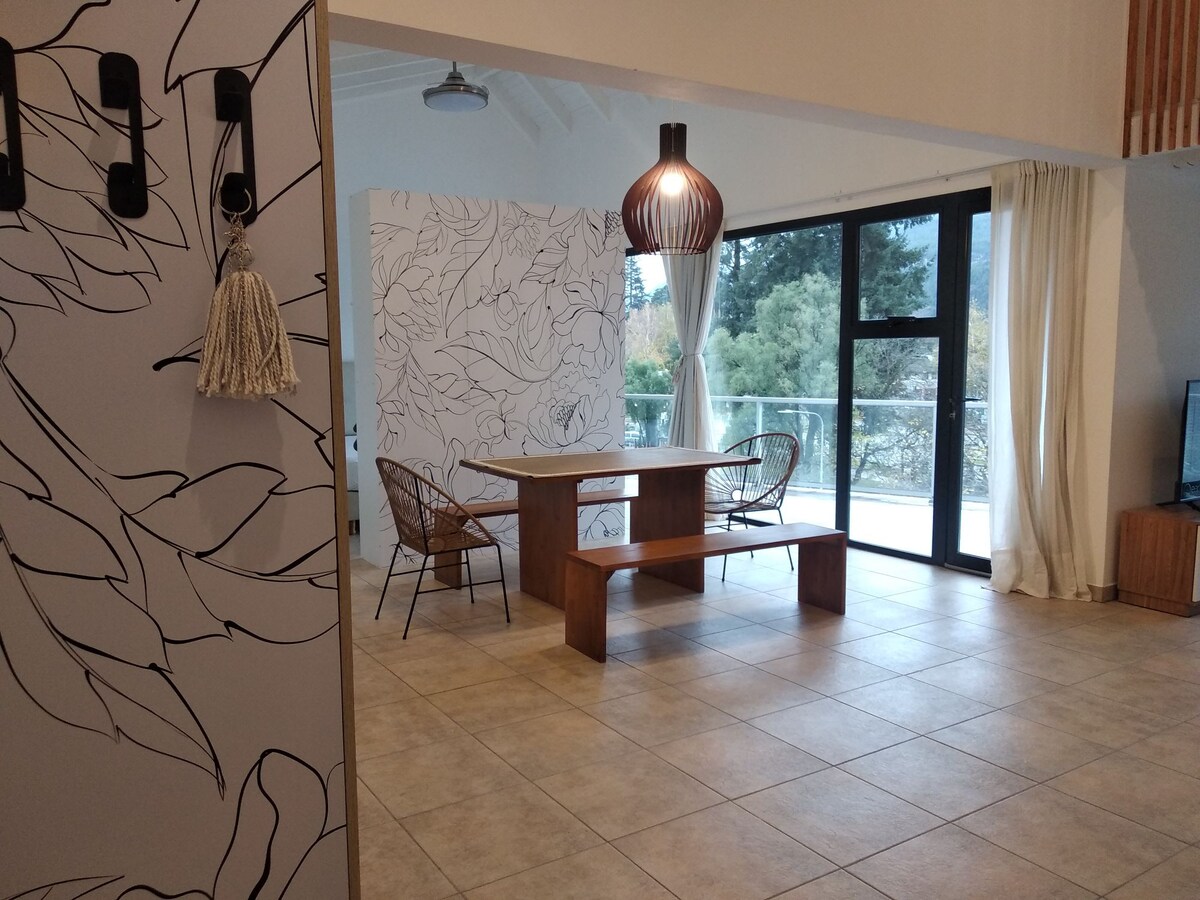 Relájate en este alojamiento bonito, acogedor y tranquilo. Monoambiente nuevo 32 m2, equipado para 2 adultos. Decoración estilo vintage-nórdica. Cochera propia al aire libre dentro del predio cerrado incluida en la estadía. Baño con bañadera con ducha, bidet, inodoro, vanitory. Dormitorio con somier de 2 plazas. Cocina comedor completamente equipada. Mesa, sillas y futón de madera. Textiles Televisor 24" Chromecast. Internet. Frente vidriado con 1 puerta y 1 ventana. Vista al lago y montañas