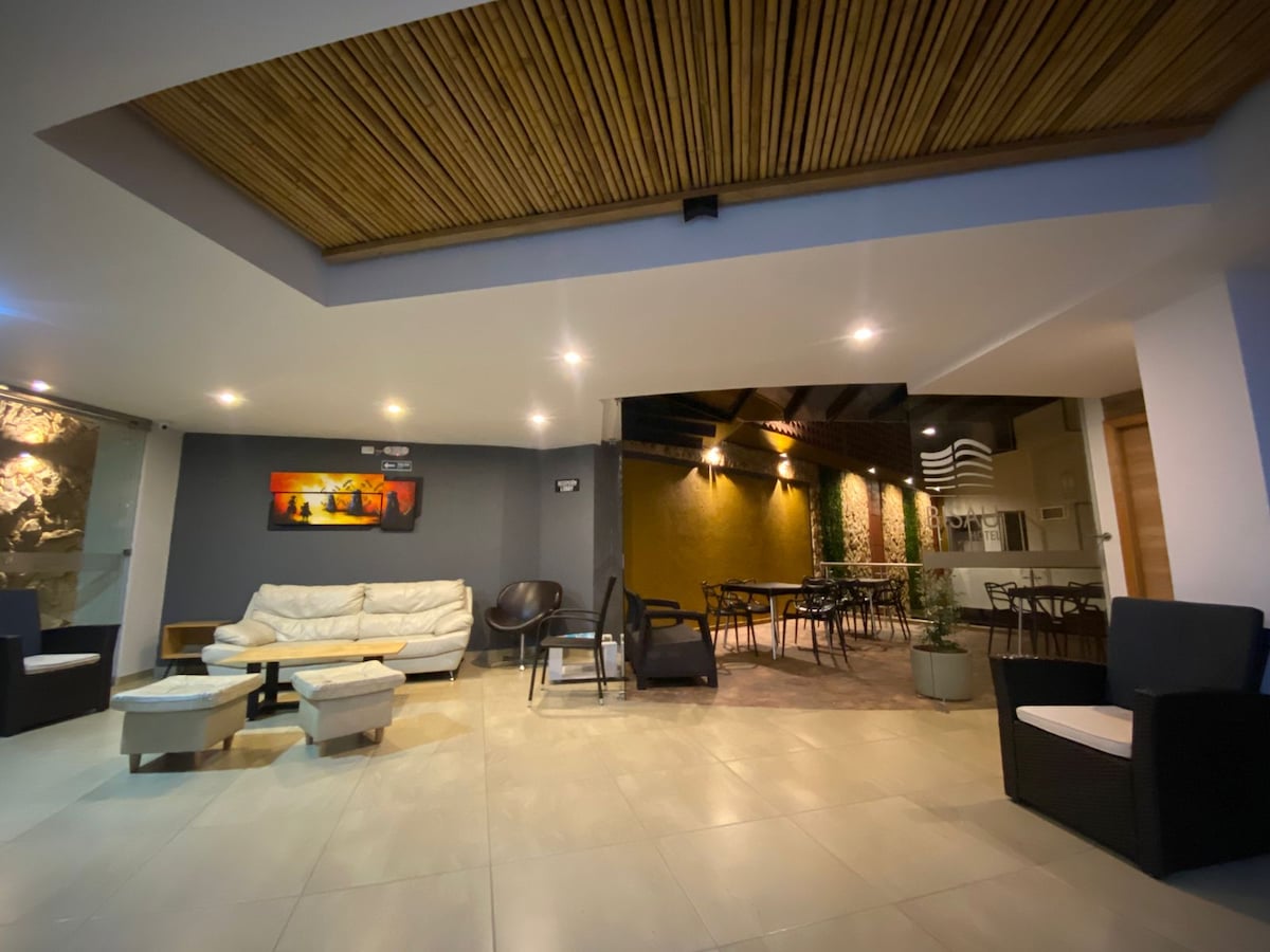 Zveme vás, abyste si užili neuvěřitelný zážitek se svou ideální osobou v tomto ubytování, které se nachází pouhých 100 m od okresu Florida v Pereira, Risaralda Tento soukromý prostor nabízí ideální podmínky pro příjemné chvíle uprostřed přírody a klidu hor. Společenská místnost je vybavena kávovarem, 55'' TV, Wi-Fi a pitnou vodou, a je také propojena s kuchyní restaurace Monkey.