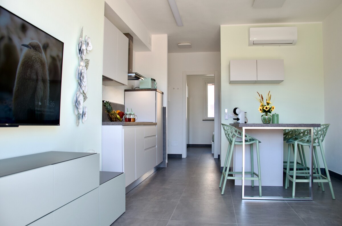 Girasole je apartmán o rozloze cca 55 m² s velkou soukromou verandou, obývacím pokojem s rozkládací manželskou postelí (připravenou k použití), kuchyní, televizí, koupelnou, manželskou ložnicí, soukromým přístupem ze zahrady a soukromým parkovacím místem. Soukromá zahrada je vybavena stoly a židlemi, které můžete využít podle libosti během chladných letních večerů.