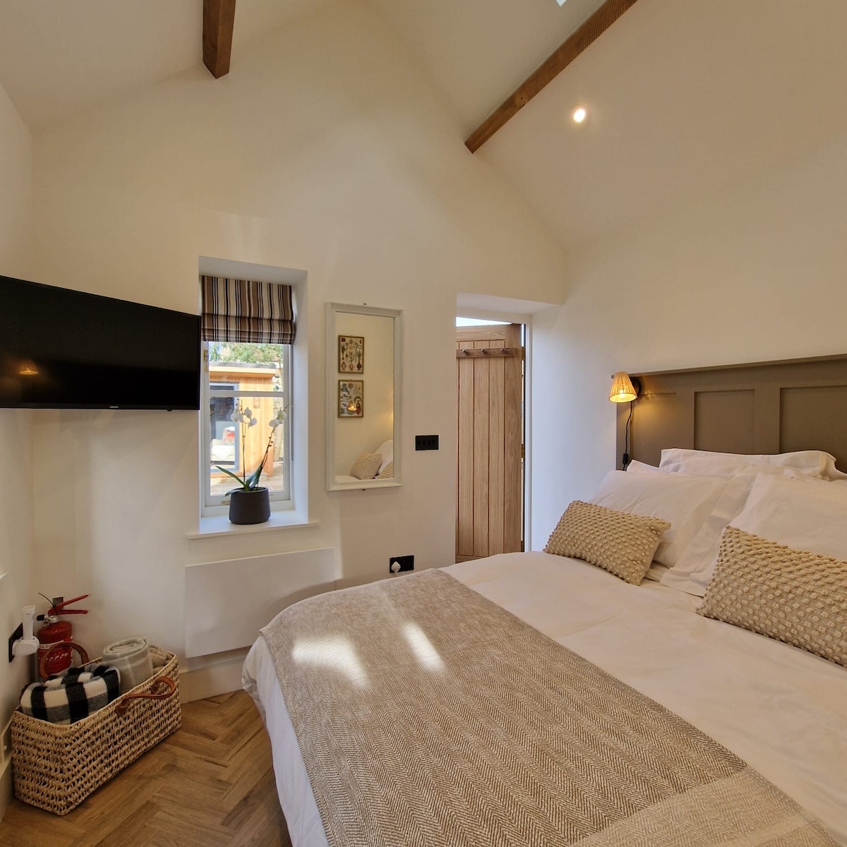 Two renovated old buildings have been converted into a quiet, one bedroom, self contained Garden room. In the centre of Slingsby village, you are well placed to explore the beautiful surrounding areas of Yorkshire. A modern kitchen with fridge, microwave and cooker is equipped for preparing delicious meals. A wall mounted television with Netflix is available. The sleeping area hosts a double bed with wall hanging for clothes, adjacent to which is a bright shower room with heated towel rail.