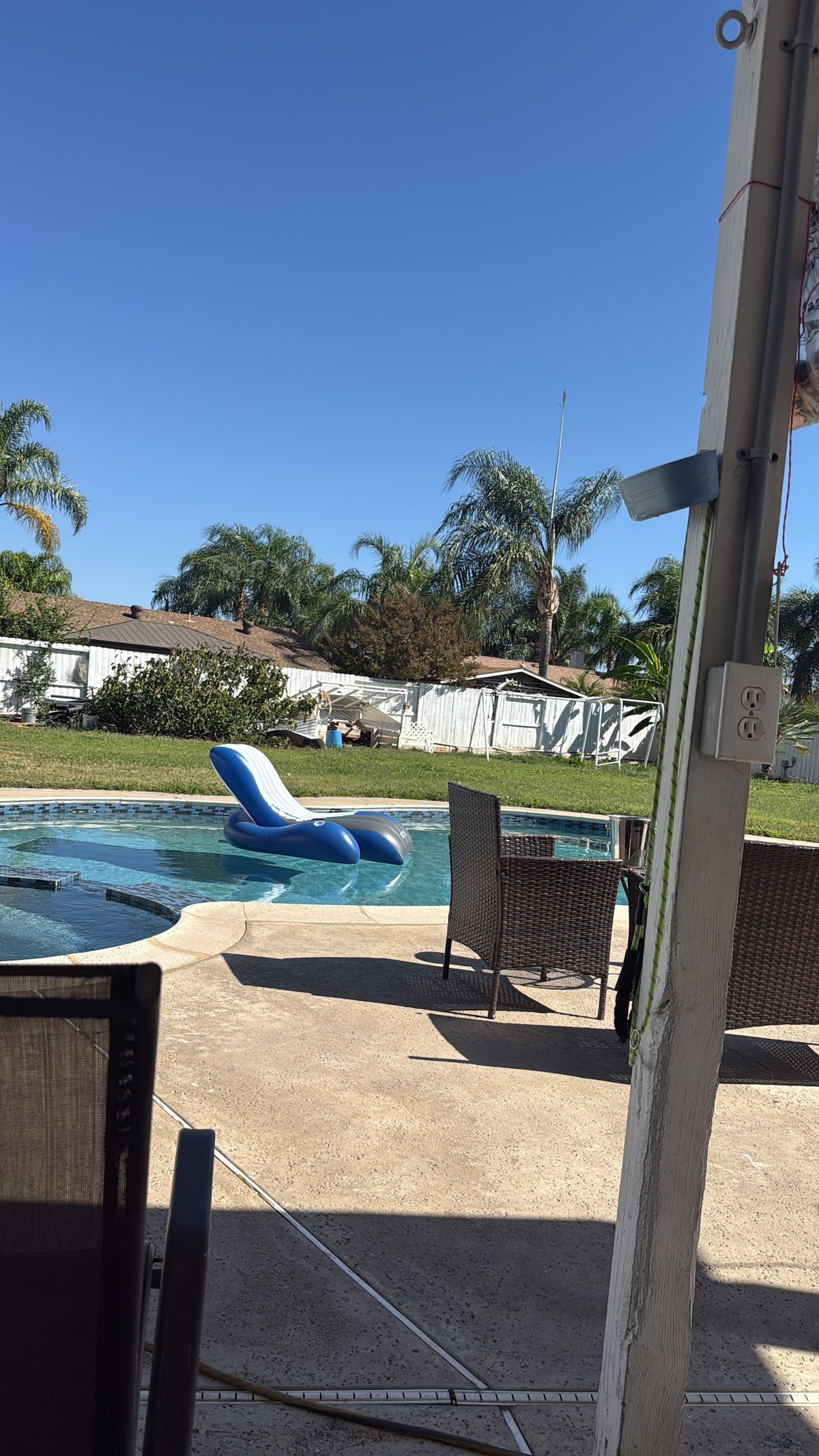 This suite is located in a two story 4 bedrooms house with private entrance and a private patio. It is in the city of Beaumont which is half hr to Palm springs (also close to Golf, Casino, And much more) with one mile to shopping centers. It is grate for anyone with kid and/or pet). It has C/A, Sofa Bed , TV, crib, microwave, refrigerator, dishes and loundry in garage. In addition, the patio has BBQ, outdoor chairs and table. The use of big yard with pool, ping pong,….is n
