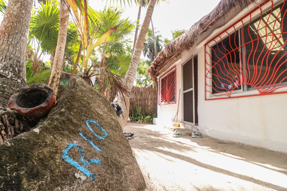 Amazing experience that will free your mind & touch your soul. Very cozy rooms, 100% ECO PRIVATE SUITES, located at the jungle side (3 min walk to beach). The room has 2 double beds. Located 5 minute walking distance from Be Tulum, Casa Malca & Nomade, the best restaurants, beach clubs, bars & shopping area. In the front, you will enjoy the best food in the area at Loco Tulum Restaurante. For the spa lovers, "Yáan Wellness Spa" is next to us. 1 minute from the taxi station & Free Wifi.
