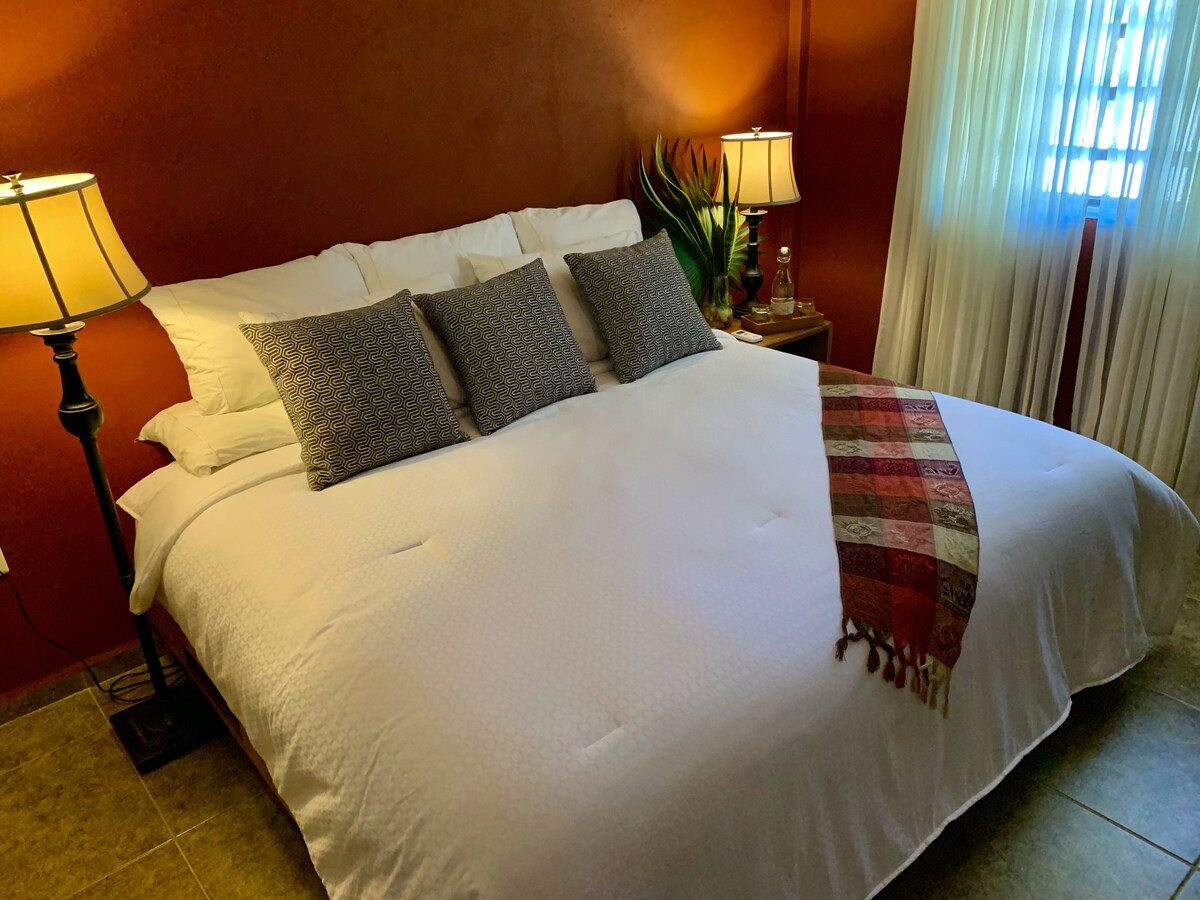 Pohodlná rodinná chata, kde jsi v kontaktu s přírodou, šetrná k životnímu prostředí, v nejlepší obytné čtvrti ostrova Cozumel, dva bloky od pláže, se soukromým přístupem a bezplatným parkováním a Wi-Fi. Ubytuje až 5 hostů. Nabízí ekologický bazén. Zařízeno v minimalistickém mexickém stylu. Obklopené zahradami a krásnými společnými prostory.