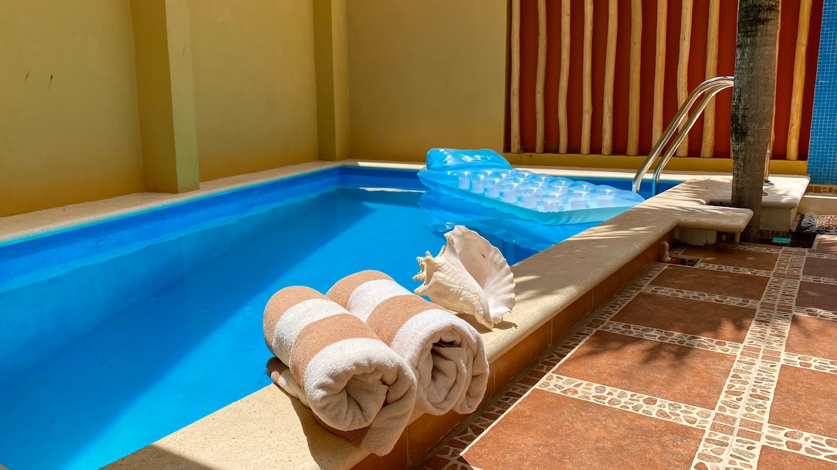 Spacious and comfortable Mexican colonial-style studio with fully equipped kitchen, 1 bathroom, satellite TV, and Wi-Fi. Relax in the cenote-style pool, enjoy another pool with palapa, chairs, and loungers, play on the tennis court, and take advantage of private beach access just 1 minute away. Perfect for couples, solo travelers, business travelers, or those seeking rest, combining comfort, exclusivity, and the best location in Playa del Carmen.