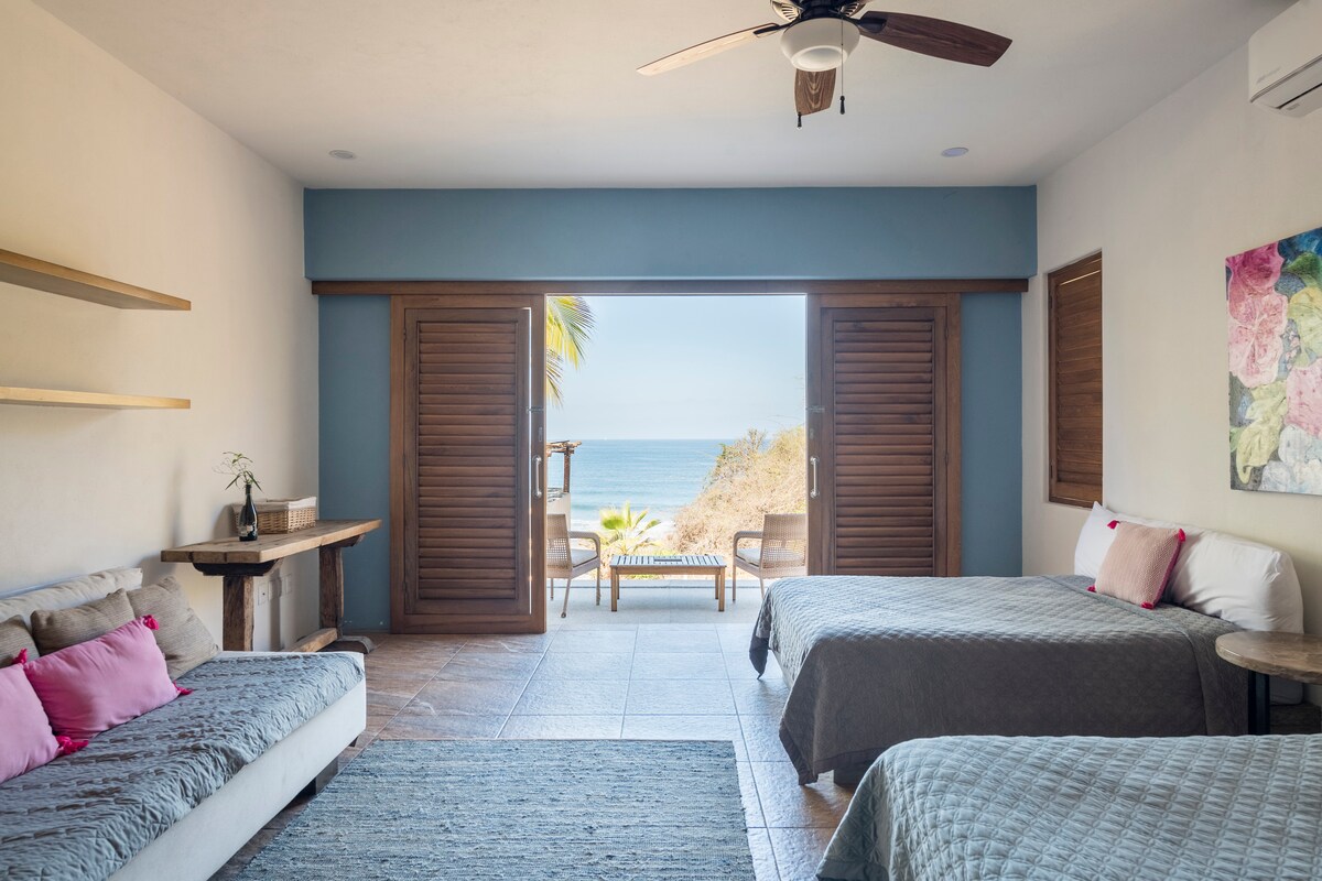 Na tomto jedinečném místě vhodném pro rodiny si vytvoříš nezapomenutelné vzpomínky. Tento domov daleko od domova má plně vybavenou kuchyň, 3 ložnice, 3 koupelny, moderní klimatizaci, 12 stop vysoký strop s moderními ventilátory v každém pokoji, malý (chladný) bazén, střešní terasu a terasu s palapas. Nachází se přímo na hlavní ulici poblíž obchodů se smíšeným zbožím, restaurací, obchodů a lékáren. 10 minut procházky na pláž pro dechberoucí západy a východy slunce. Nebo si zajezděte na vlnách.