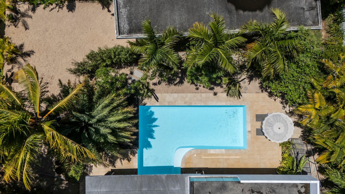 Moderní duplex v plážovém stylu v Bain Boeuf, jen pár minut chůze od krásné pláže (400 m) a potápěčské školy, ve velmi klidné čtvrti. Velké otevřené obytné prostory s integrovanou kuchyní, uzavřený dvůr s pocitem otevřenosti, soukromý bazén a venkovní sprcha pro osvěžení. Život u oceánu v celé své kráse – s moderním pohodlím.