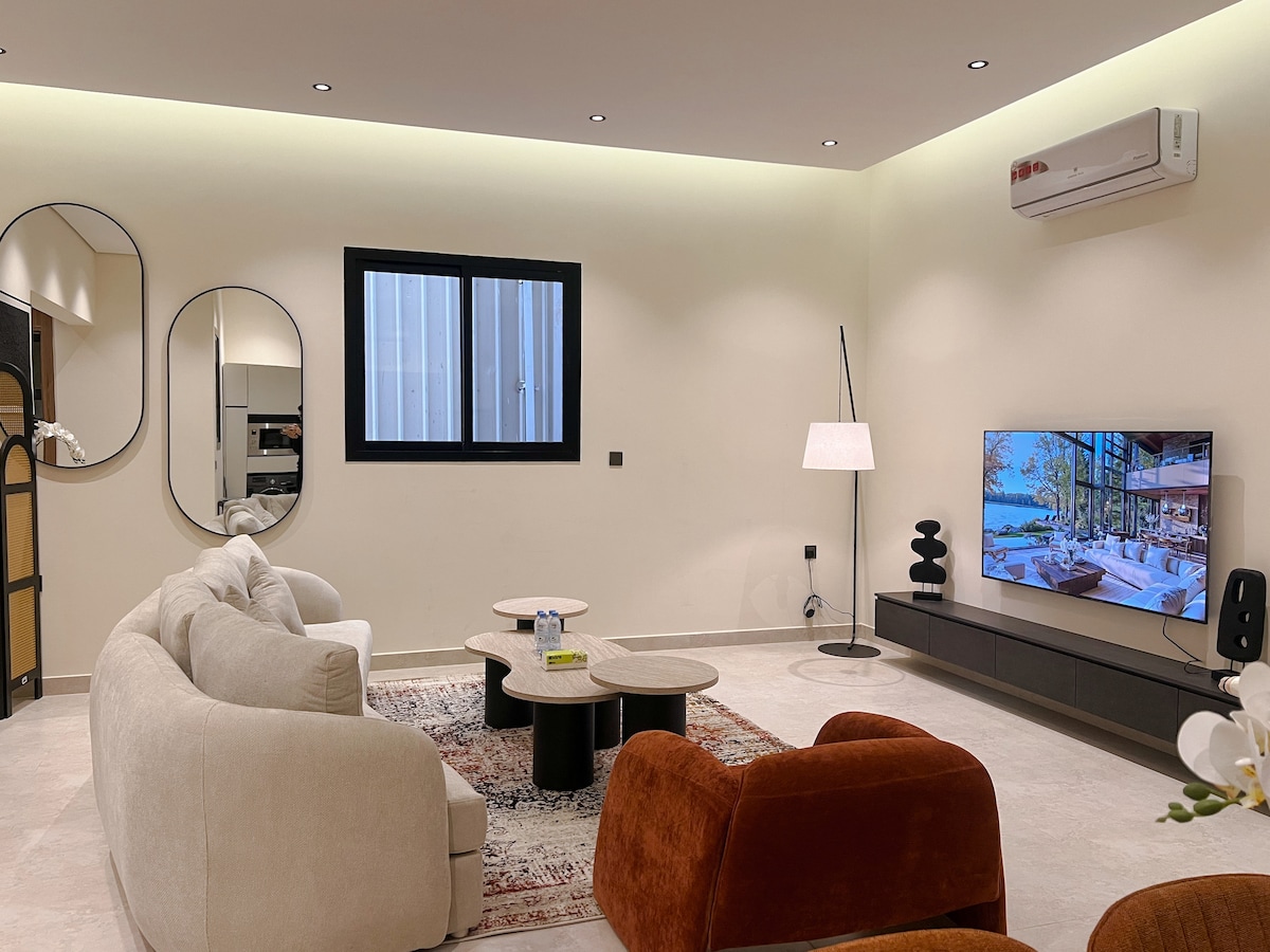 Užij si luxusní pobyt v moderním apartmánu v samém srdci Hittinu, jedné z nejlepších čtvrtí Rijádu. Byt je pečlivě zařízen pro maximální pohodlí, s elegantním nábytkem a moderními prvky. 📍 Lokalita: Pár minut od Boulevard Riyadh, Sports Boulevard, Kingdom Arena, nejlepších obchodních center a vynikající gastronomie. ✨ Funkce: • Moderní a pohodlný design • Kvalitní postel a ložní prádlo • Chytrá televize a bezplatné Wi-Fi • Plně vybavená kuchyň • Samoobslužný proces ubytování • Parkování zdarma