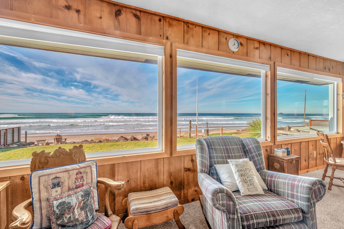 * „Naprosto krásný domov. Perfektní, relaxační pobyt s úžasným výhledem!“ - 55" Smart TV living/rm + DVD přehrávač – 2 x 65" chytré televizory v ložnicích – Vířivka na pobřeží s pomocným zvedákem - Oceanfront patio w/park style -charcoal BBQ + dining - Plně zásobená kuchyně - Parkování pro 4 auta - 300 Mb/s wifi - Herna ~ kulečníkový stůl, stolní tenis, vzdušný hokej a plážové hračky/židle - Krb 3 minuty (chůze) - Roads End (přístup na pláž) 3 minuty (autem) – obchody s potravinami, kasino 12 minut (autem) – Lincoln City Outlets