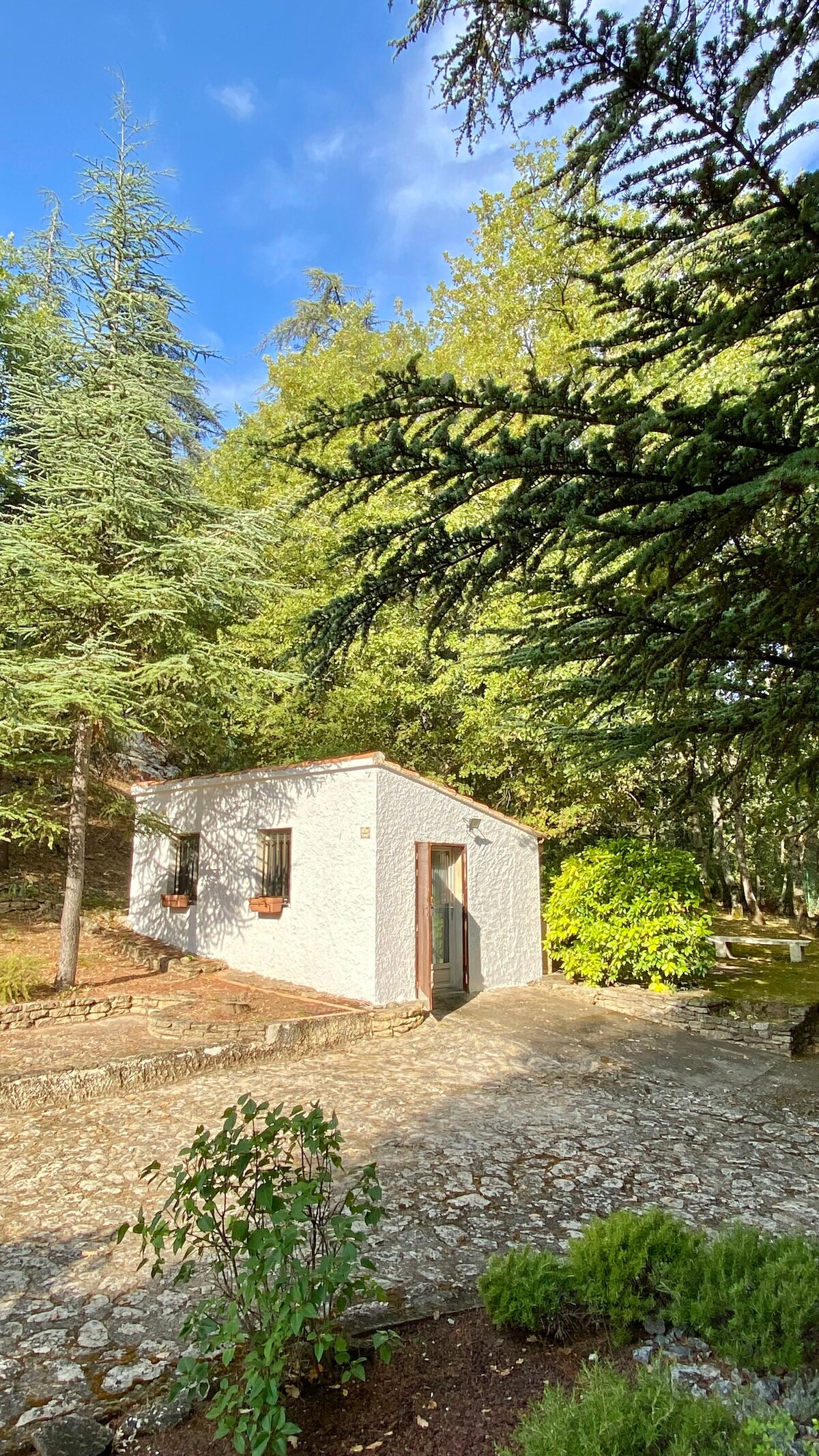 Chata se nachází v klidné oblasti mimo vesnici Robion na úpatí pohoří Luberon, s výhledem na hory, obchody v okolí. Tento 35 m² velký domek sousedí s naším domem a má vlastní vchod. Obývací pokoj s kuchyňským koutem. Ložnice v mezipatře. Koupelna se sprchovým koutem a WC. Venku je terasa se zahradním nábytkem, houpačka, gril. Vaše vozidlo bude v bezpečí na našem pozemku, který je zcela oplocen.