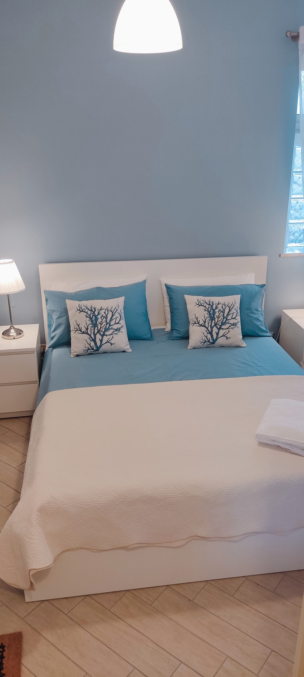 Samostatný dvoulůžkový pokoj s výhledem na moře, pečlivě zařízený a s vlastní terasou, vybavený kuchyňkou, vlastní koupelnou, Wi-Fi internetem, klimatizací, chytrou TV a bezplatným parkováním na ulici. Ideální pro užívání si moře a odpočinek na pláži bez nutnosti používat auto, také vynikající jako logistická základna pro návštěvu nedaleké Taorminy (25 minut), Etně (1 hodina) a okolních vesnic