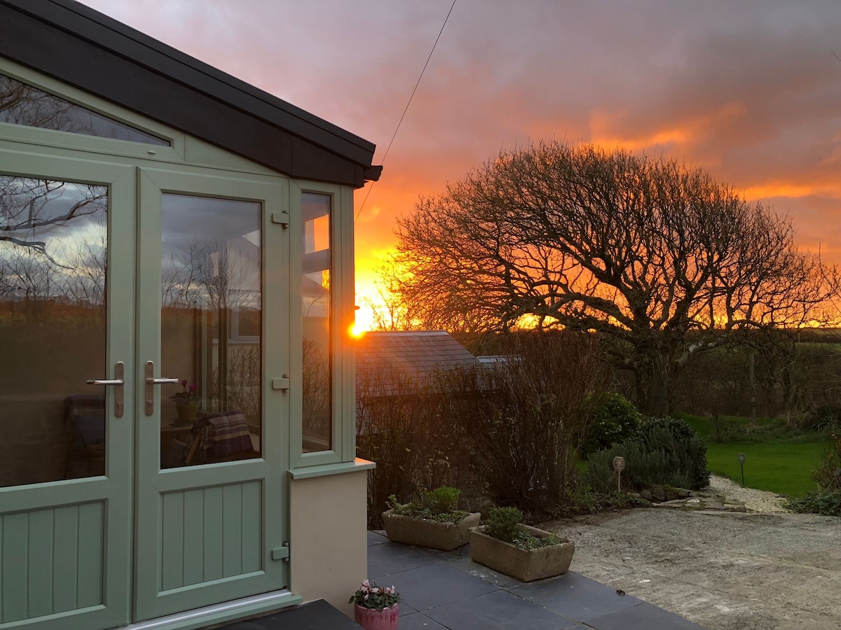 Romantická chalupa v Pembrokeshire na krásném 3akrovém pozemku se saunou, přírodním rybníkem (závislé na dešti), hernou a kajaky. Procházky po kopcích, ohromující pláže a procházky po útesu v blízkosti. Pohodlná manželská postel s výhledem na hvězdy. Přitul se ke krbovým kamnům (dřevo zdarma). Velká koupelna s vanou, sprchou a podlahovým vytápěním. Dobře vybavená kuchyně s kávovarem. Kryté venkovní posezení s ohništěm a grilem. Optický internet, chytrá televize (Netflix atd.). 2 dobře vychované psy vítány.