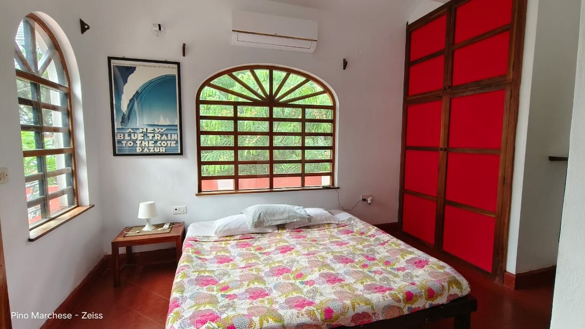 Zrekonstruovali jsme skromný tradiční tamilský dům, abychom vytvořili jedinečné ubytování a nasáli místní lidovou architekturu a zároveň si užili moderní vybavení. This Tamil house is part of a cluster of houses on a family estate called Kariappa House which has a beautiful covered lap pool and a tropical garden. This Room with en suite bathroom has twin beds which can be joined to form a double. Veškerý nábytek je starožitný a textil jsou přírodní a recyklované tkaniny.