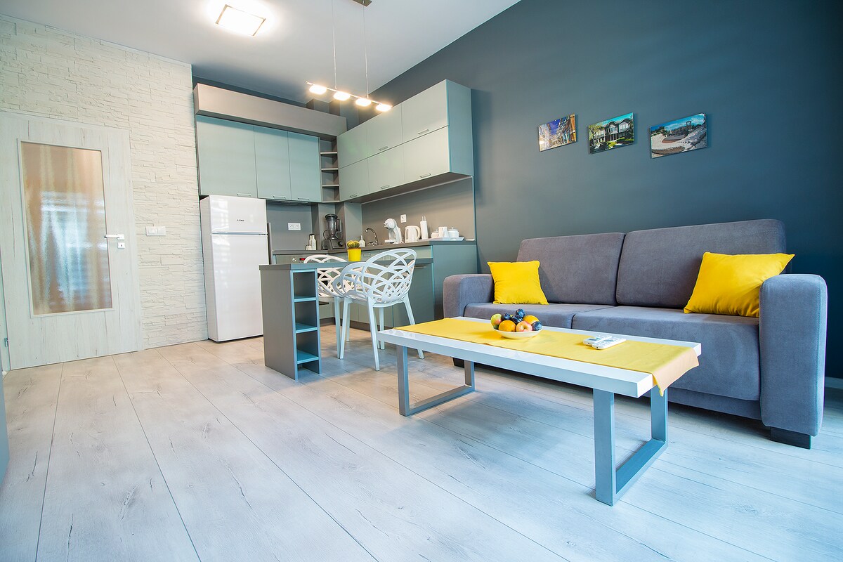 V tomto stylovém ubytování se zabaví celá tvoje rodina. Zbrusu nový byt v nové budově na špičkovém místě ve městě. Zařízeno s velkým vkusem pro váš útulný pobyt. V docházkové vzdálenosti od Starého Města, venkovního bazénu, restaurací a obchodů. Pohotový hostitel, který vás osobně přivítá a pomůže vám s ubytováním.