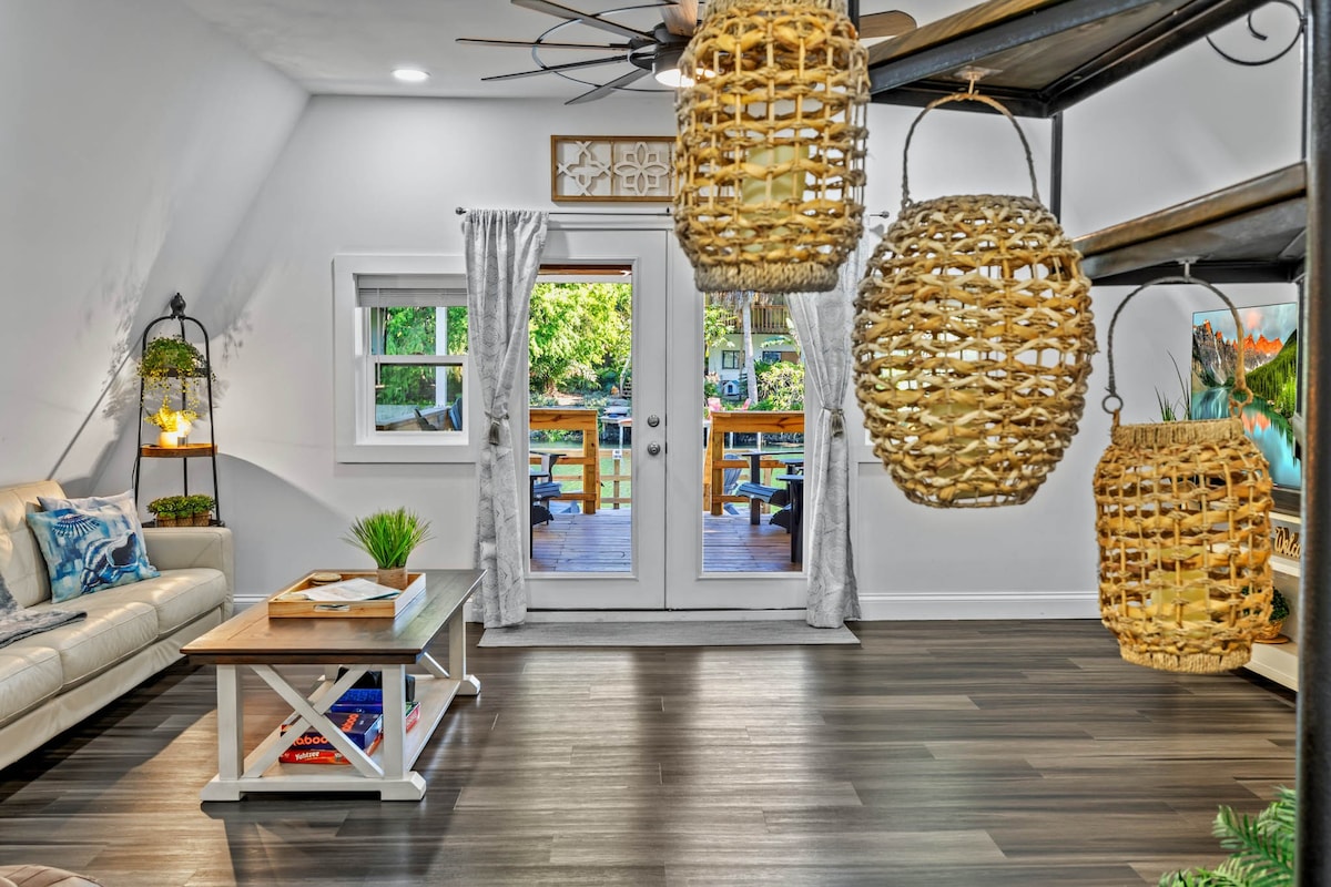 Funky Flamingo River Cottage je skrytý klenot na řece Weeki Wachee, určený pro zábavu, relaxaci a dobrodružství. Užij si verandu chráněnou před komáry, pohodlnou manželskou postel, chytré televize v každém pokoji a plně zásobenou kuchyň. Pádluj s kapustňáky v našem průhledném kajaku, plav se na nafukovacím lileku nebo si odpočiň u ohniště. Díky hrám uvnitř i venku, houpací síti a přímému přístupu k vodě je to ideální únik – hned vedle hlavní řeky, mezi státním parkem a Rogerovým parkem.
