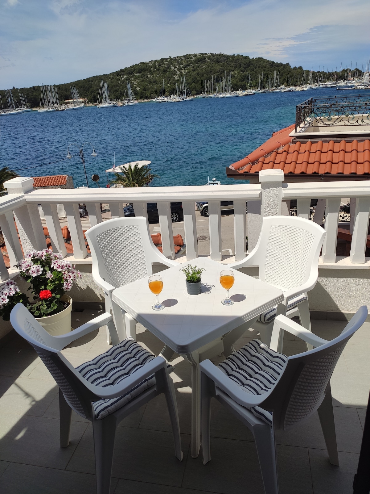 Krásný zcela zrekonstruovaný byt v prvním patře rodinného domu situovaného na pláži, obklopený borovicemi a s výhledem na pobřeží a zátoku. Místo se skládá ze dvou ložnic, koupelny, plně vybavené kuchyně, obývacího pokoje a jídelny. Z obývacího pokoje se dostanete na terasu s posezením a venkovním jídelním prostorem, se zatahovacími slunečními clony. Hosté mohou využít parkoviště a venkovní gril na zahradě. 5 až 10 minut procházky po pobřeží do centra města, 300 m od tržiště.