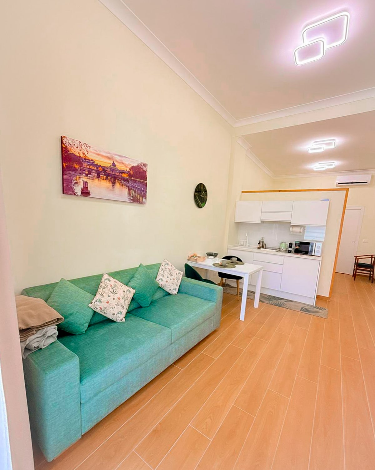 SAMOSTATNÝ VSTUP, můj malý dům je velmi centrální, ale tichý a klidný, je pečlivě udržovaný, aby nabídl příjemný pobyt ve Věčném městě. Celý apartmán je k dispozici hostům, rozprostírá se na dvou podlažích: v přízemí se nachází plně vybavená kuchyně s ostrůvkem pro stolování, pohodlná koupelna se sprchovým koutem a malý obývací pokoj s chytrým televizorem, v patře se nachází ložnice. Pro relaxaci venku je tu exkluzivní dvůr.