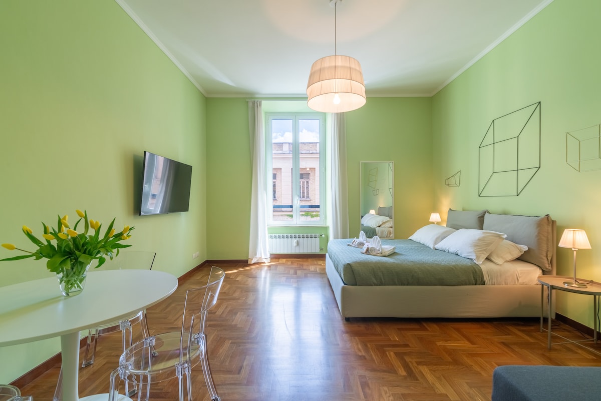 Zažij Řím jako místní obyvatel z tohoto světlého garsonky v centru města, 250 metrů od Kolosea a Fora Romana. Naše nově zrekonstruované městské studio nabízí útulný a moderní prostor k odpočinku a relaxaci a bude vaší základnou pro objevování Říma – všechny hlavní atrakce jsou v docházkové vzdálenosti! Co si zamiluješ: - Plně zrekonstruováno v roce 2022 - Luxusní moderní výzdoba – zděný strop z 19. století - Historická budova - Ulice bez provozu, velmi tichá