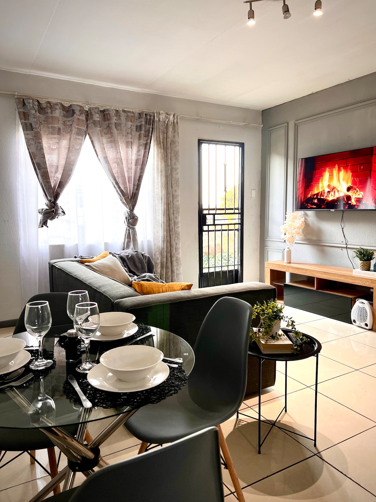 Moderní, plně zařízený, bezpečný a klidný apartmán v srdci Melrose Arch. Je to dokonalý únik z města a je vhodný jak pro volnočasové, tak pro služební cesty. Neomezený optický internet, bezpečné a klidné prostředí, automatický měnič, 82" TV (obývací pokoj) a 37" TV (ložnice), obě chytré. Příhodně se nachází v nákupní čtvrti Melrose Arch s přístupem ke všem obchodům a restauracím. Záložní generátor v budově, bezpečné a zabezpečené parkování s 24hodinovou ostrahou 😊