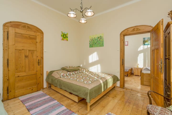 2 jednolůžka, 2 patrové postele, 2 pohovky