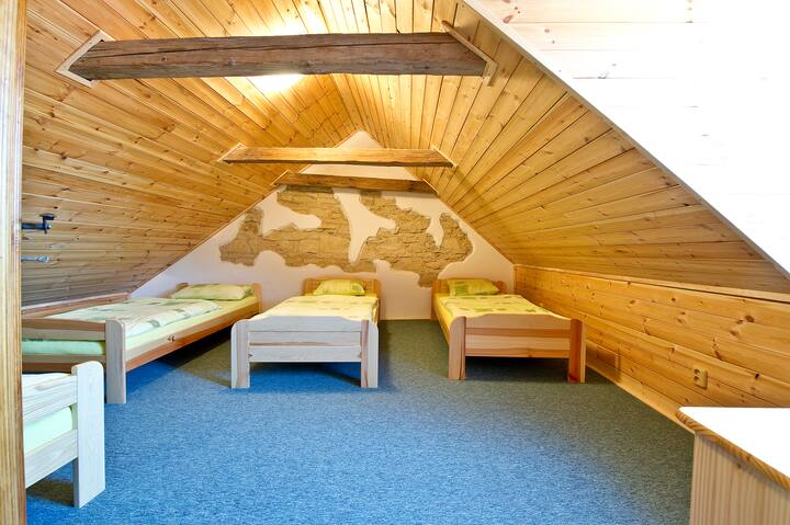1 jednolůžko, 1 patrová postel, 1 pohovka