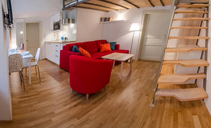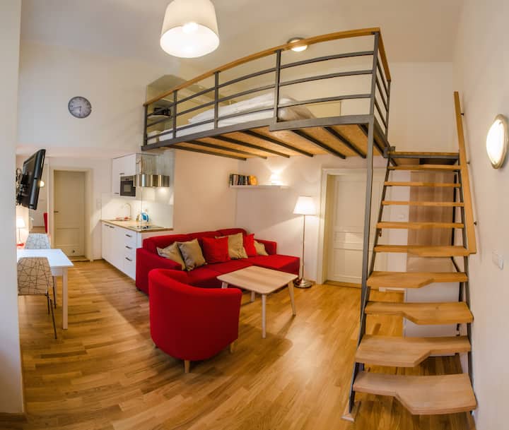 Oba apartmány najdete přesně v centru měst, pěší vzdálenosti od všech hlavních pražských památek, výhled, pocit starého ducha historické Prahy.