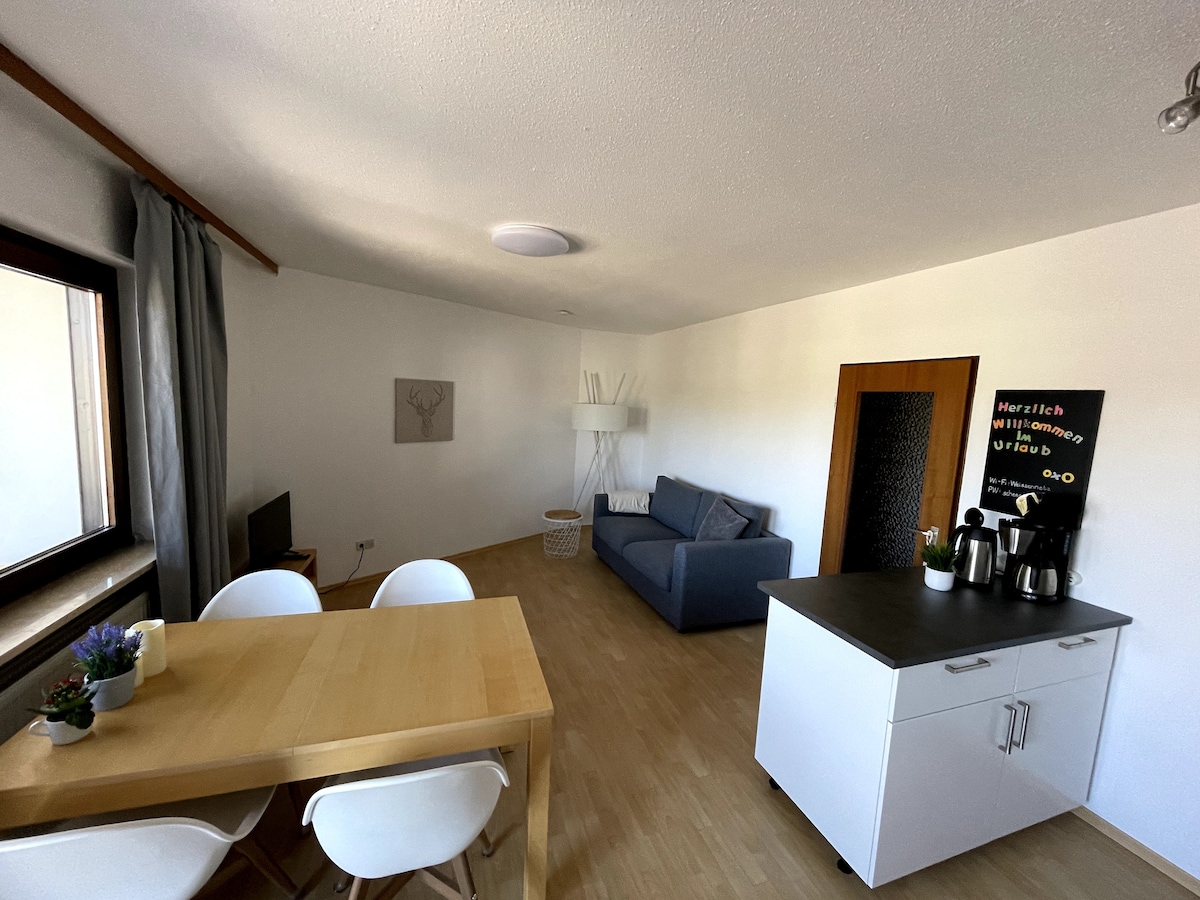 Vychutnejte si idylický výhled na hory, prozkoumejte malebnou přírodu a jezera, stejně jako nedaleké památky, jako je zámek Neuschwanstein, Forggensee, Füssen atd. Vybavení: 1x manželská postel (1,80 m), 2x samostatná lůžka (90 cm), ručníky a ložní prádlo, malá myčka nádobí, automat na kávu, toustovač, varná konvice, trouba, pračka se sušičkou, sluneční terasa, vana, krb na dřevo a Smart TV. Elektrokola: 15 €/den Sauna: 5 €/den Možnost nákupu pár kroků daleko. Psi vítáni (max. 2).