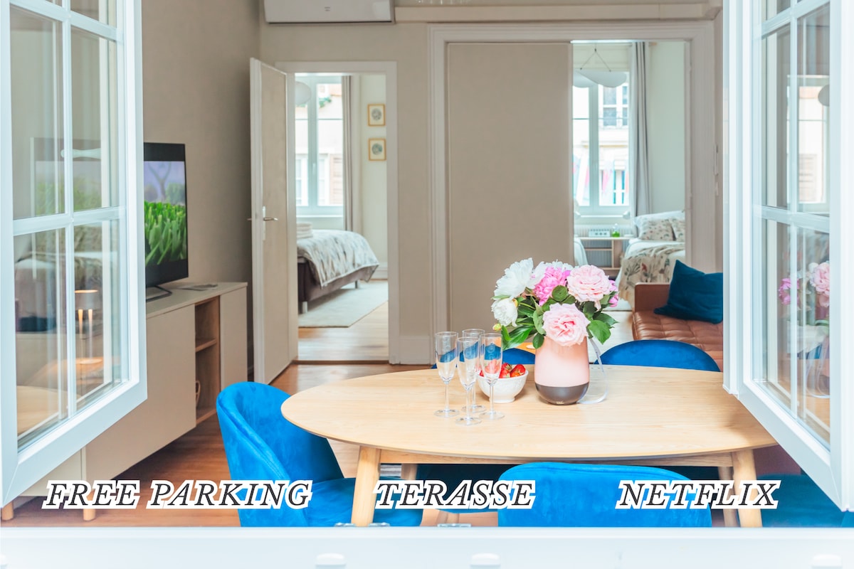 33 m² calme, centre de Mulhouse, terrasse, parking