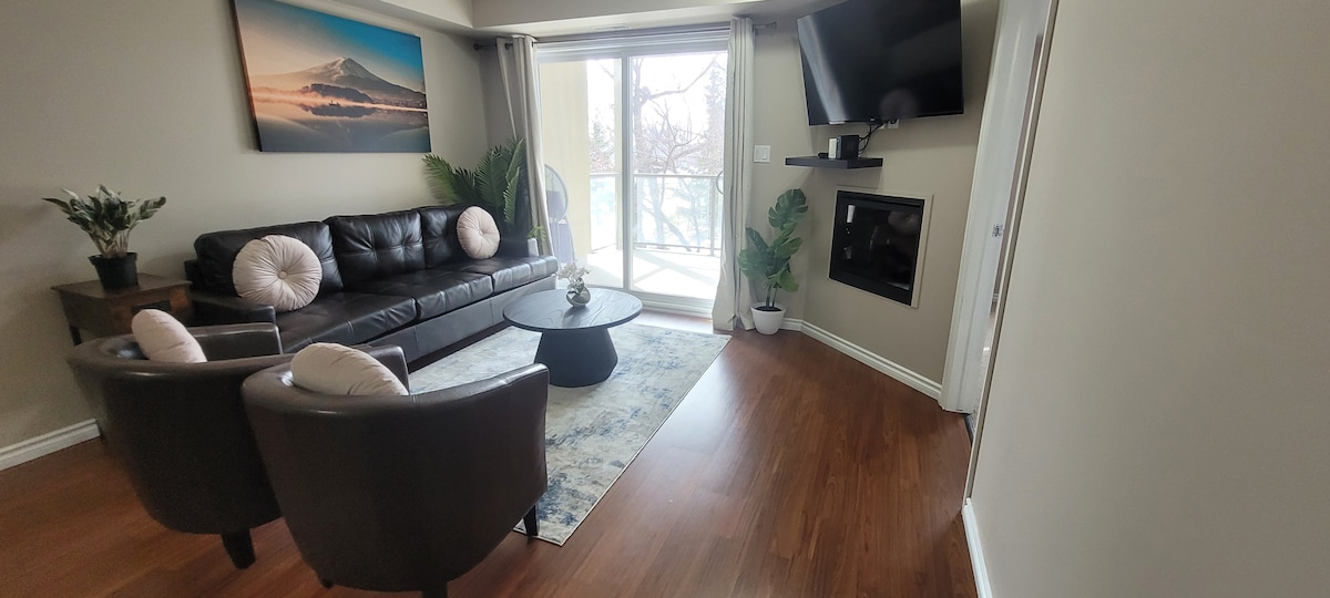 Zatímco zde najdete stylový a prvotřídní pobyt v centru Edmontonu s BEZPLATNÝM podzemním/vyhřívaným/zabezpečeným parkováním pro 1 vozidlo. V blízkosti dopravy, Rogers Place, nákupního centra City Center, restaurací, obchodů s alkoholem a River Valley. Ultra rychlý gigabitový internet. Klimatizace v jednotce. Apartmán ve stylu New Yorku s 1 ložnicí a 2 plnými postelemi (manželská a dvoulůžková) má vše, co potřebujete, včetně prádelny v apartmánech, Netflixu, plně vybavené kuchyně se všemi nezbytnostmi. Zahrnuje předplatné Sportnetu, sledujte zápasy Oilers & Jays!