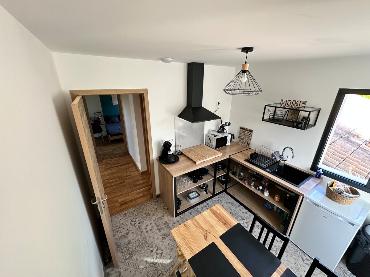 Repasované ✨ ubytování (říjen 2024), v blízkosti občanské vybavenosti. Samoobslužný proces ubytování přes uzamyk 🔑 Útulný dům o rozloze 25 m²: otevřená kuchyně do obývacího pokoje s připojenou TV, ložnice v patře s TV, koupelna/WC. K dispozici je📶 WiFi, ložní prádlo a ručníky. 🚗 Soukromé parkoviště zdarma. 📍 2 km vlakové nádraží, 3 km centrum města, 400 m obchody (pekárna, tabák, vinný bar, restaurace).