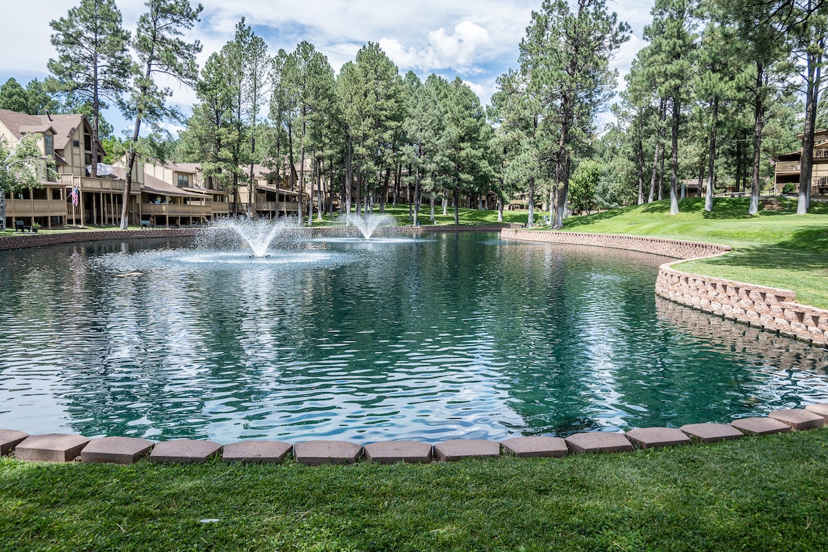 Tato útulná chata je klidně usazena mezi vysokými borovicemi a je ideální pro ubytování až 4 hostů. Jedna ložnice, jedna koupelna, obývací pokoj, jídelna, plně vybavená kuchyně, stůl, nová vířivka a terasa; ideální pro ty, kteří si chtějí odpočinout a užít si to, co Ruidoso nabízí. Nachází se v klidné čtvrti, která je jen 10 minut procházky dolů kopcem do Midtownu, centra vesnice pro nákupy a restaurace. Chata je 37 minut jízdy od Ski Apache, 10 minut jízdy od kasín.