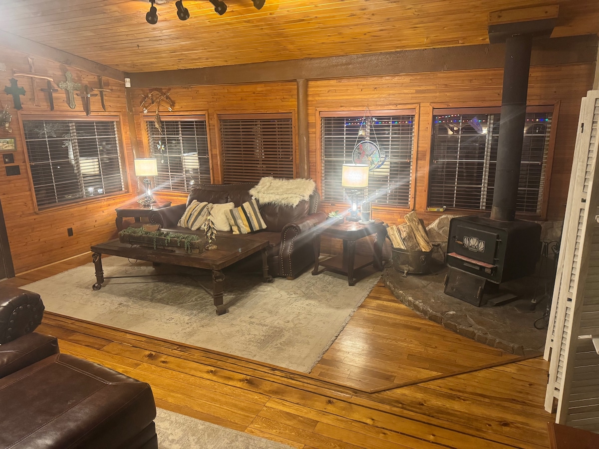 Beautiful and relaxing cabin style condo in the heart of Ruidoso, Very spacious 1 bedroom 1 bath, with a king bed, a sofa bed with comfortable matress and bunk beds. Kitchen fully equiped , dinning room table for up to 6, table games for you to enjoy. Walking distance to Farleys rest. and the bowling alley, 5 min drive to snow tubing. Short drive to Ski and downtown. Perfect getaway for a small family or a group of friends. Come enjoy the nature and let us provide you with the best comfort.