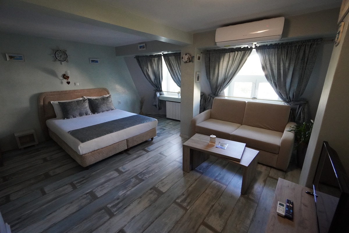 Stylově zařízené studia v nejkrásnější části města Ruse, několik metrů od Dunaje a centrálního náměstí. Máme jeden dvoulůžkový pokoj s vlastní koupelnou, jednou manželskou postelí, kávovarem s kapslemi a termoskou. Jedno studio s plně vybavenou kuchyní s pračkou, sušičkou, troubou, plotnou, lednicí, termoskou a barovým stolem. Samostatná koupelna, jedna manželská postel nebo dvě samostatné. Vychutnejte si stylový zážitek na tomto místě s centrální polohou.