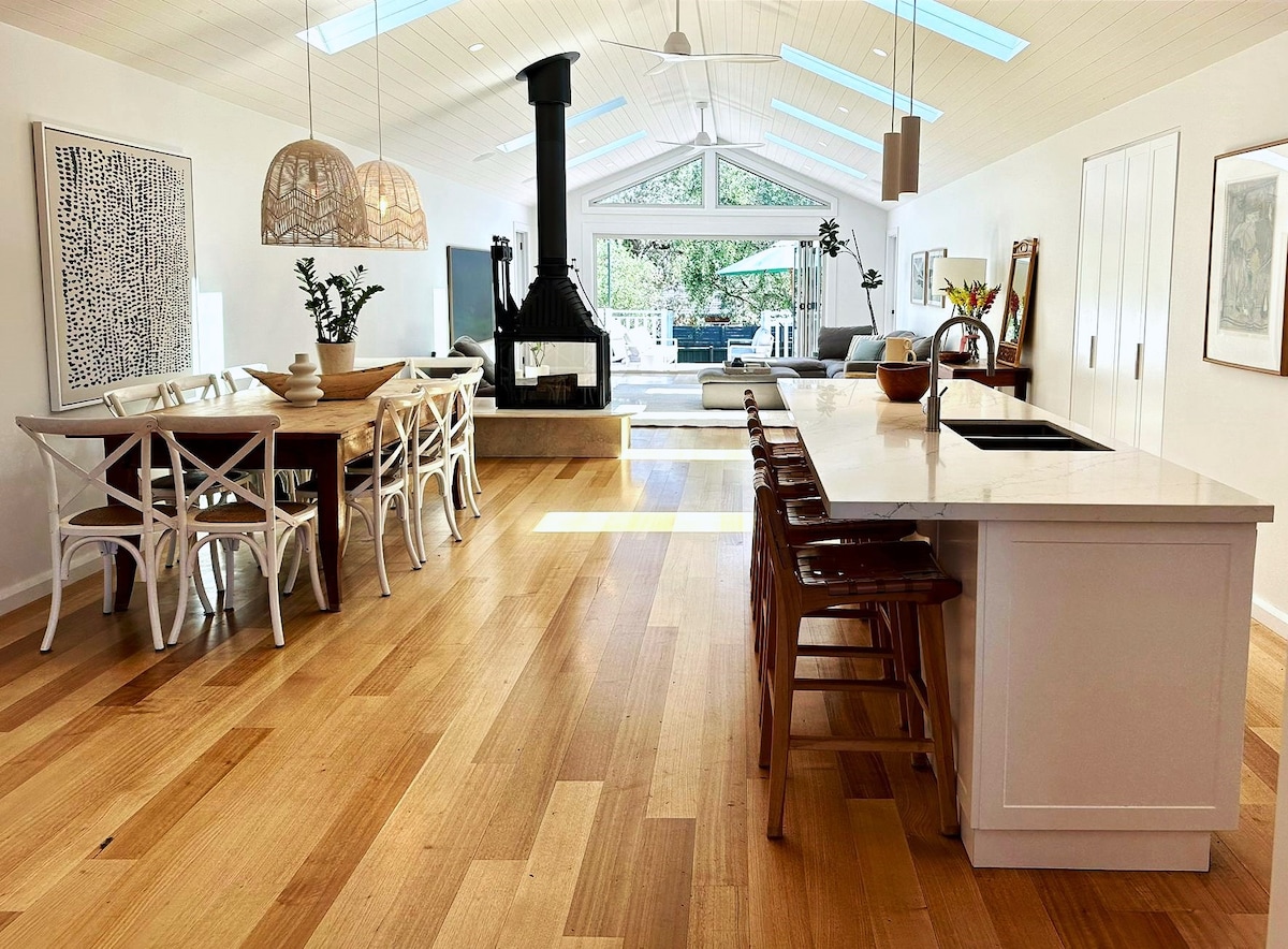 Come in, light the fire and make yourself at home. Complimentary firewood is provided for cosy stays. Tucked in the tea trees, this private cottage is just 4 minutes to the beach, 7 minutes to the hot springs and close to wineries and restaurants. Outside, a spacious deck, BBQ and fully fenced yard, perfect for dogs. Inside, a well equipped kitchen, comfortable living area, luxurious beds and a strong, hot shower to warm up after beach walks. Cosy, beautiful and perfect for winter escapes.