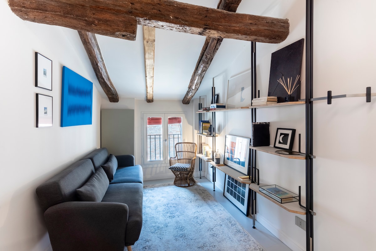 Okouzlující podkrovní byt se nachází v srdci Bologny s nádherným výhledem na Piazza Santo Stefano (bazilika Sedmi kostelů). Exkluzivní klidné místo, kde se moderní a historický nábytek kombinuje do krásného OTEVŘENÉHO PROSTORU. Podkroví má veškeré pohodlí a luxus. Nachází se 5 minut chůze od Piazza Maggiore, hlavního náměstí, 2 minuty od Dvou věží a od mnoha barů a restaurací. Nachází se uvnitř oblasti s omezeným provozem (ZTL) a v pěší zóně