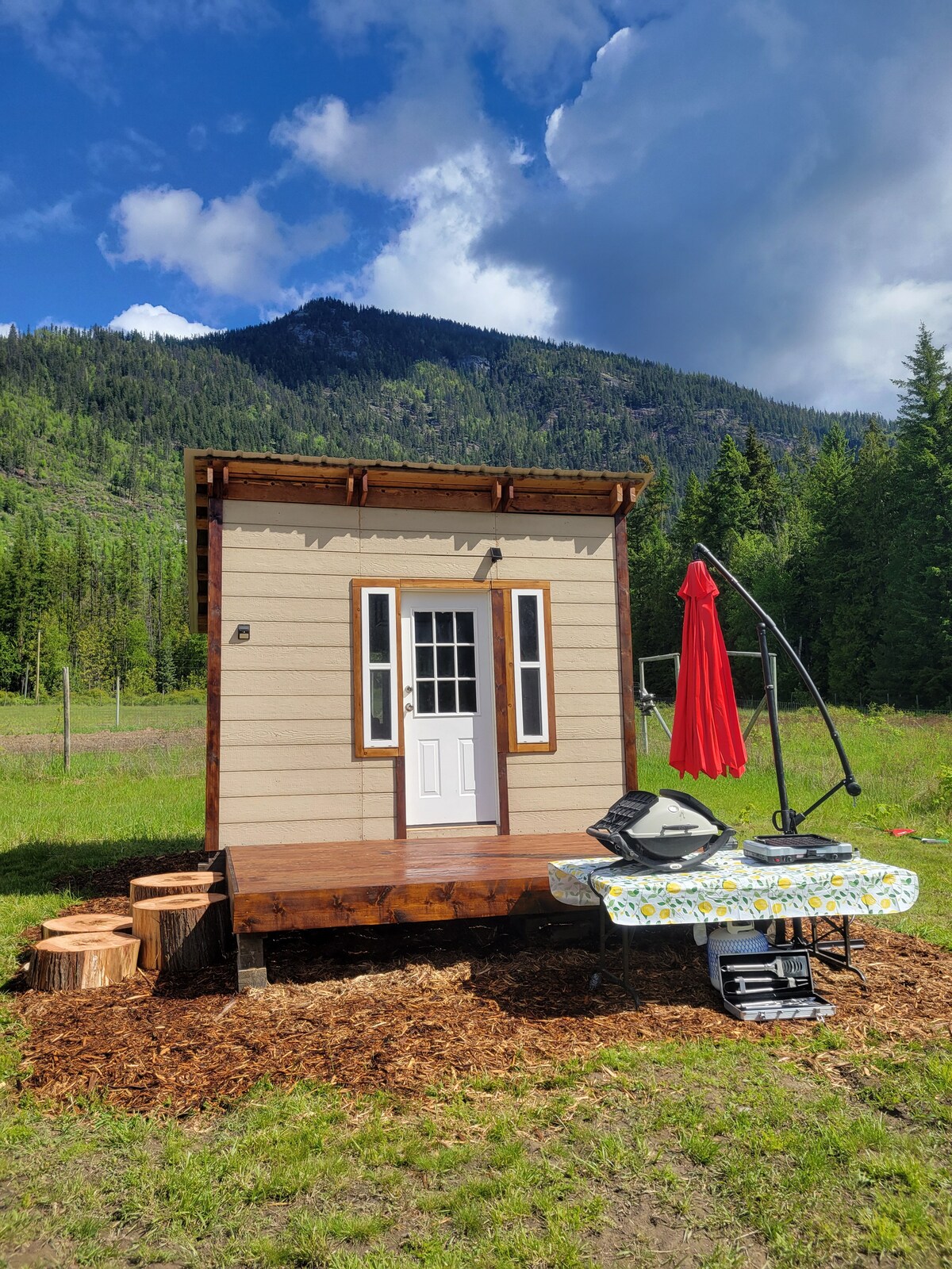 Soukromý, klidný a super roztomilý malý domek v lese, jen 5 minut do centra Nelsonu. Uvelebte se na útulném křesle, užijte si kamna na dřevo a výhled do lesa. Využijte naši vířivku s horskou pramenitou vodou nebo si rezervujte saunu na dřevo (+50 USD) a studený ponor pro dokonalou relaxaci a osvěžení v Kootenay. Vystoupej po žebříku do podkrovní ložnice s manželskou postelí, sbírkou knih a optickým internetem. Venkovní krb, sprcha, turistické, cyklistické a lyžařské trasy v okolí. Najdi si své šťastné místo v našem horském útočišti